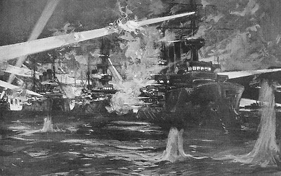 ▲ 일함의 공격을 받고 있는 러시아 함대 © 런던타임즈 LONDONTIMES