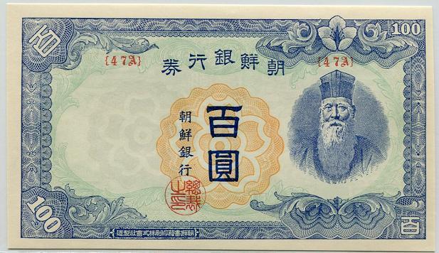 아무튼 미군군정이 시작되었지만, 45년 11월 2일 군정법령 21호에 의해 조선은행법 효력이 존속되어 조선은행권이 계속 사용되었습니다. (초기에는 미군 군표도 함께 통용)