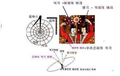 즉하늘에서 황극의 위치변화에따라 은하의 북극점도 따라서 돌아간다는 말이다.