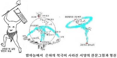 북극을 돌고있는 황극은 주극성위치 그러니까 밤하늘에서 언제나 볼 수있는 반면 우리은하의 북극 <형천>은 나타났다 사라지게된다.
