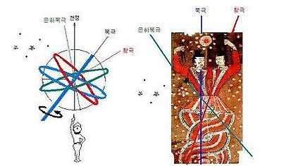 여와가 그리는 둥근 원은 지구에서 인간이 설정한 중심축 북극을 중심으로 그리는 赤緯이다.
