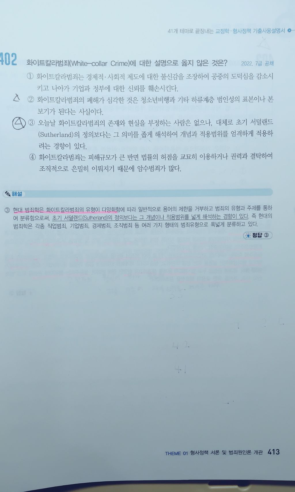 작성자임현 작성시간 24.03.12 화이트칼라범죄는 일반범죄와는 다른 특징이 있지만, 소년이나 하류계층 범죄자가 그러한 화이트칼라범죄를 보고 배워 유사한 형태의 범죄를 저지를 수 있다는 것입니다. 하류계층이라면 그 동안 자신이 해오던 범죄유형 외에 저런 방법도 있다는 것을 터득하여 실행할 수 있겠지요. 그것은 일종의 학습효과로서, 누구든(어떤 계층이든) 있을 수 있는 내용으로 보아야 합니다.