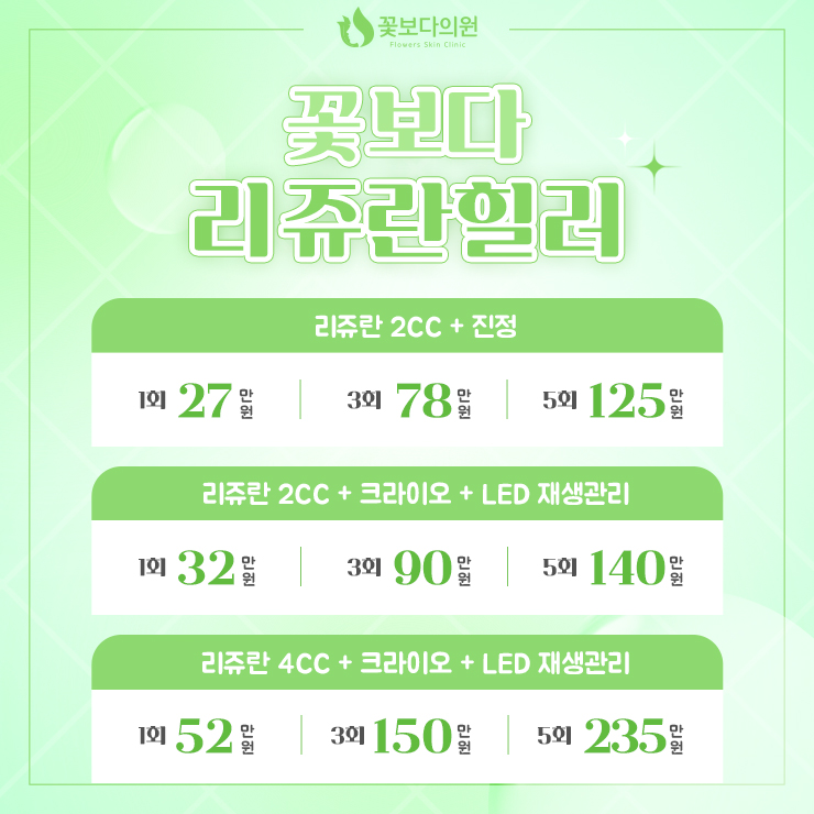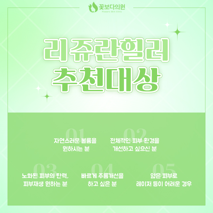 만약 광교피부과추천 받아 관리를 꾸준하게 받아왔음에도 불구하고 레이저로 피부 자극이 되어 망설여지시는 분들이라면 과하지 않게 자연스러운 변화를 만들어주는 리쥬란힐러를 통해 촉촉하면서도 맑은 피부를 기대해 볼 수 있습니다.