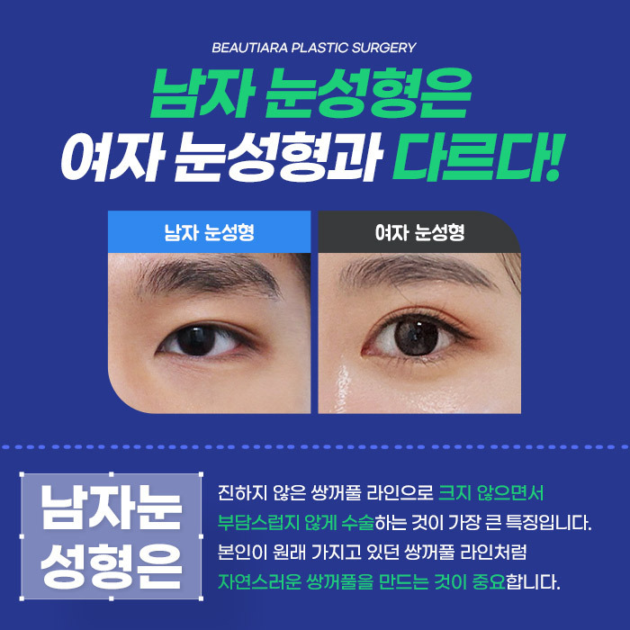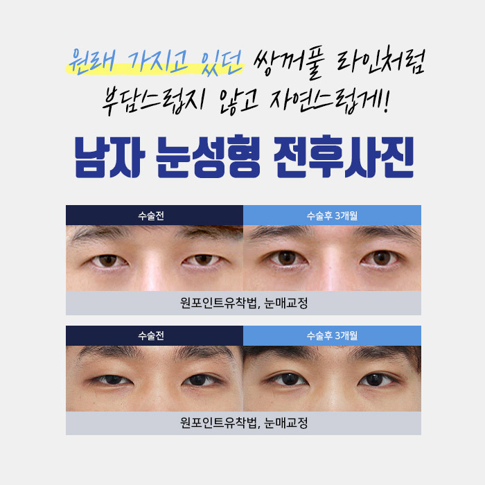 남자눈수술은 비교적 여자보다 눈꺼플이 두껍기 때문에