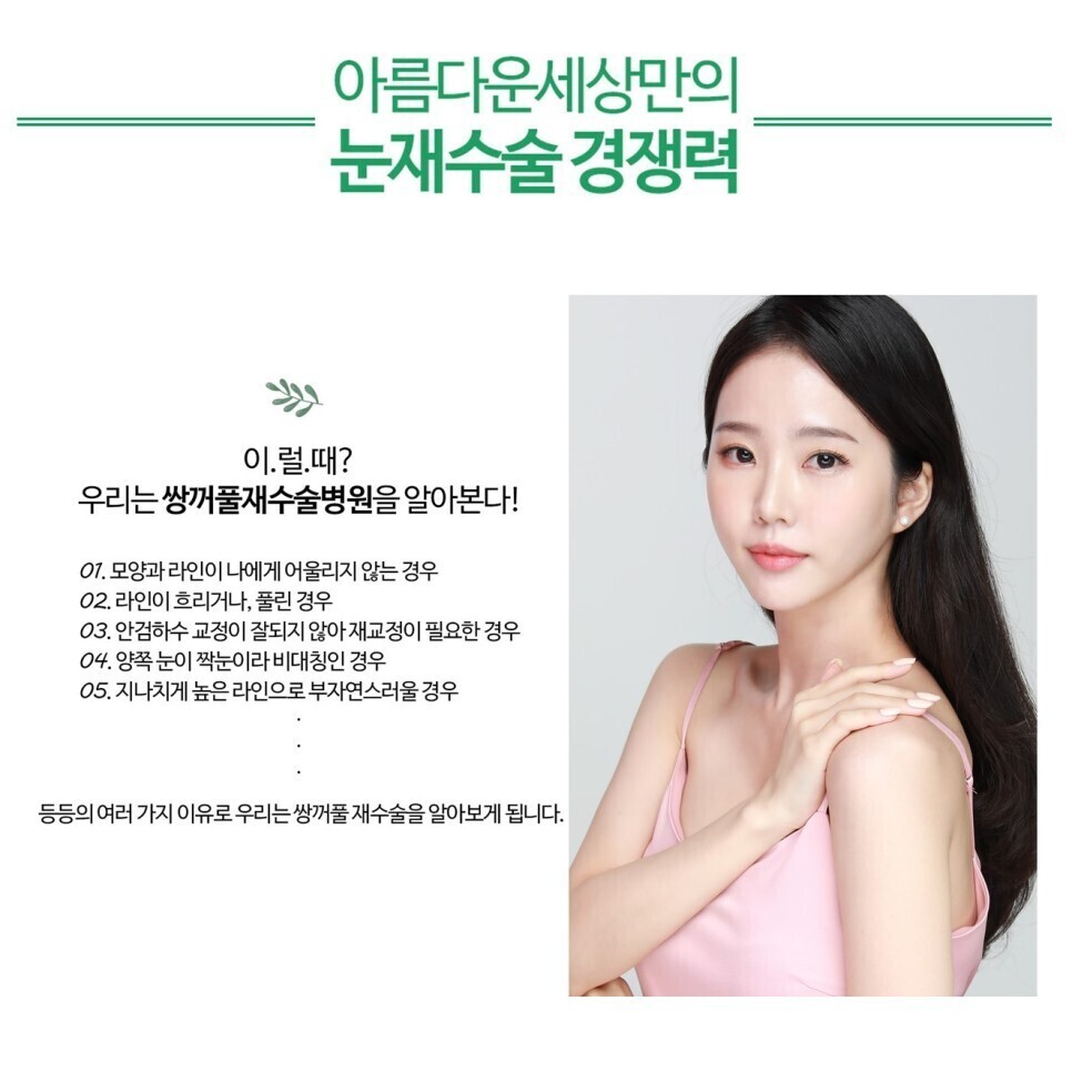 눈재수술잘하는병원 아름다운세상성형외과에서 절개없는눈재수술로 또렷하고 화려한 눈매로 다시 태어나요~!