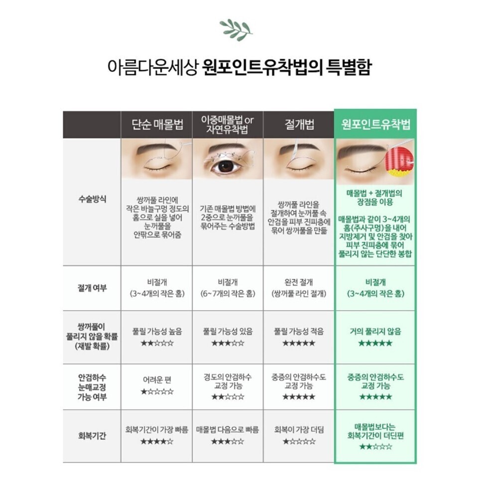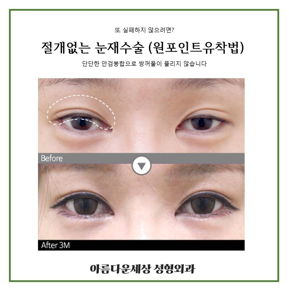 눈재수술잘하는병원 아름다운세상성형외과 원포인트유착법 큰 장점 !!