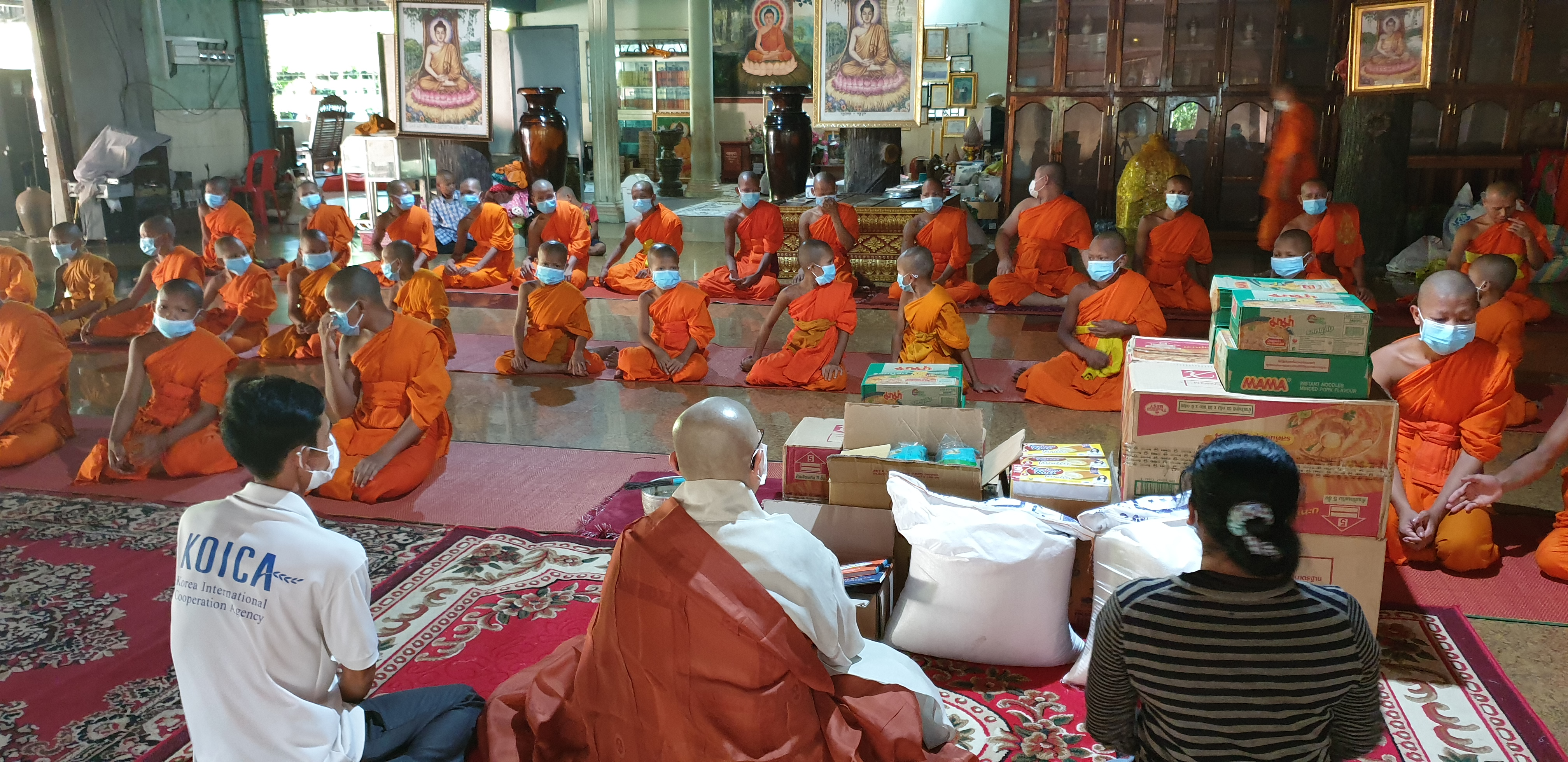 불교국가 캄보디아의 코로나 확산으로 인한 탁발 중지로 캄보디아 내 많은 사찰이 어려움을 겪고 있습니다.