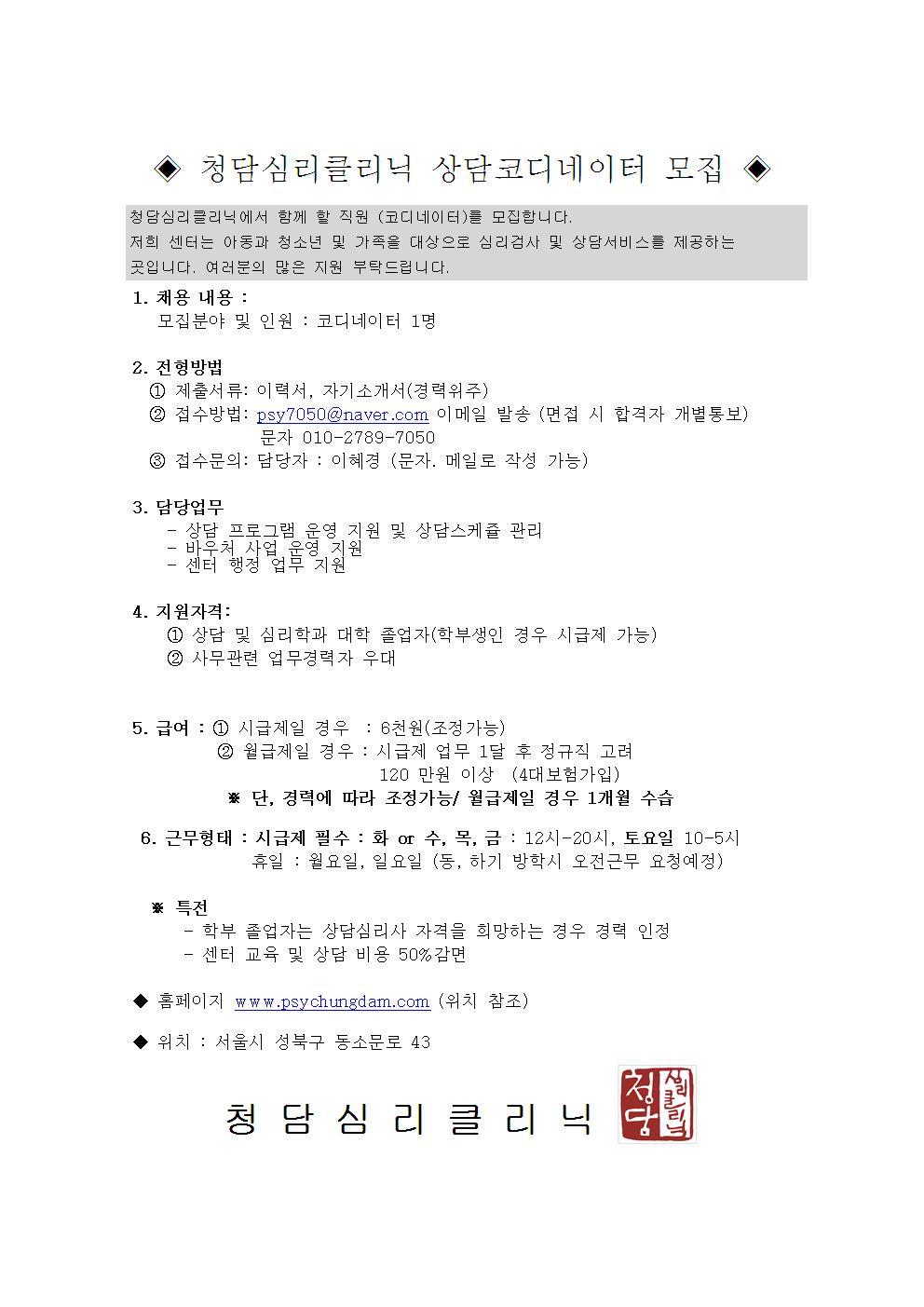 ◈ 청담심리클리닉 상담코디네이터 모집 ◈ 작성자청담심리|작성시간14.12.12|조회수66 목록 댓글 0 글자크기 작게가 글자크기 크게가 다음검색 현재 게시글 추가 기능 열기 북마크 공유하기 신고 센터로 신고 댓글 댓글 0 댓글쓰기 답글쓰기 댓글 리스트