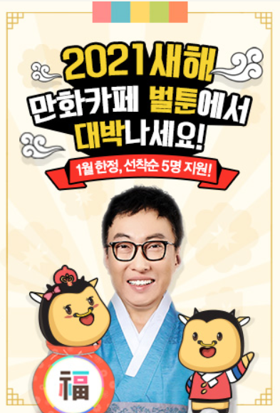 만화카페 벌툰을 발견한 이후 다른 곳도 가 봤지만 여기만큼 연인들의 인기 놀이터이고 본사의 경쟁력이 높은 곳은 없었어요. 그래서 어떤 혜택이 있는지 알아보려고 홈페이지를 가 보니까 새해 프로모션을 막 시작했더라고요.