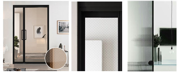 중문에 쓰는 유리 종류에 따라서도 집 분위기가 달라진다. 일반적으로 쓰는 투명 유리에서부터 은은하게 반투명 처리해 시선을 적당히 차단해주는 사틴 유리, 북유럽 감성을 살려주면서도 유리가 파손될 경우 파편을 잡아주는 철망이 삽입돼 수요가 많은 망입 유리, 단면을 일정한 간격으로 음각 처리해 개성있는 분위기를 살려주는 모루 유리 등 다양한 유리가 시중에 나와있다. 각 유리의 종류에 따라 집의 인상이 달라지기 때문에 꼼꼼히 비교해보고 선택하는 것이 좋다.