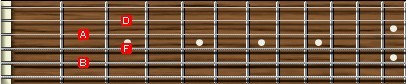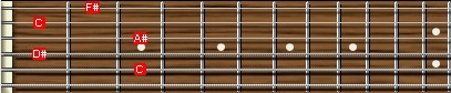 Cm7b5 (5번줄을 근음으로하는코드폼) 구성음 : 도 , 미b , 솔b , 시b (6번줄은 엄지로 커트 해서 소리나지않게합니다)5화음 약식코드