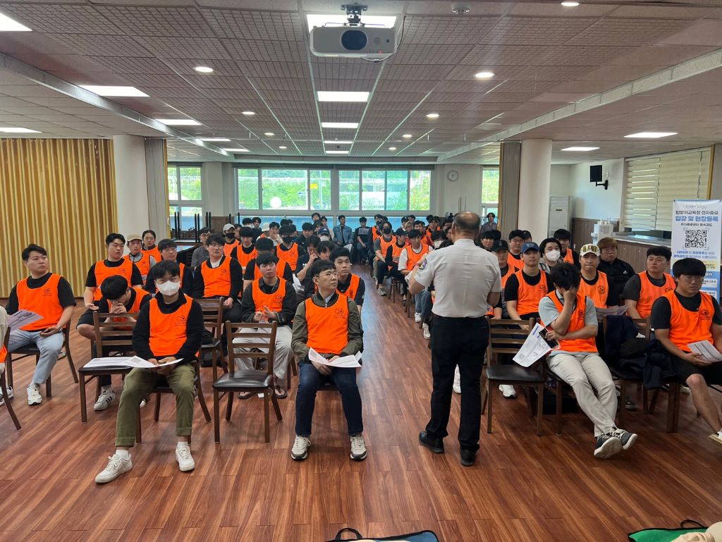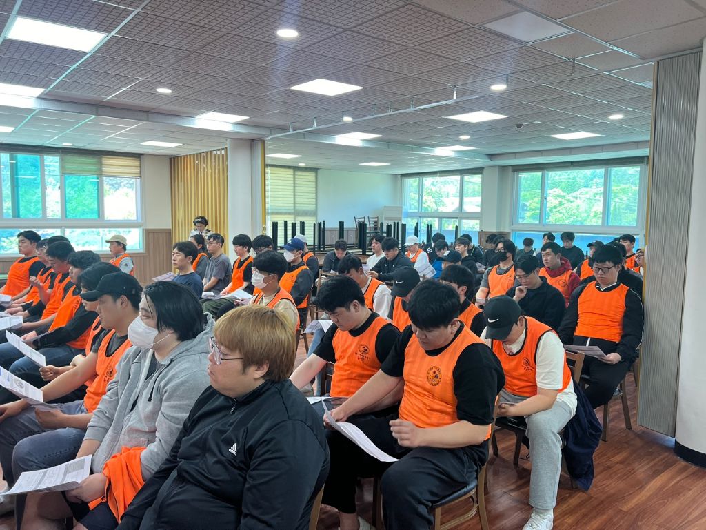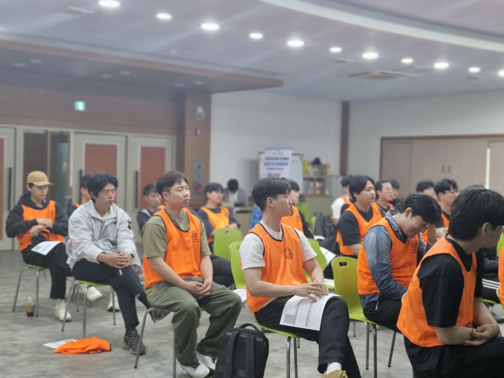 *실기평가 중인 교육생들과 지도자들