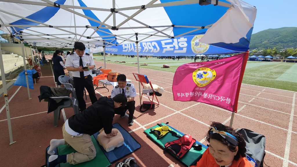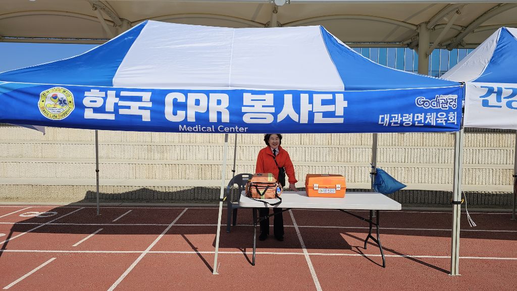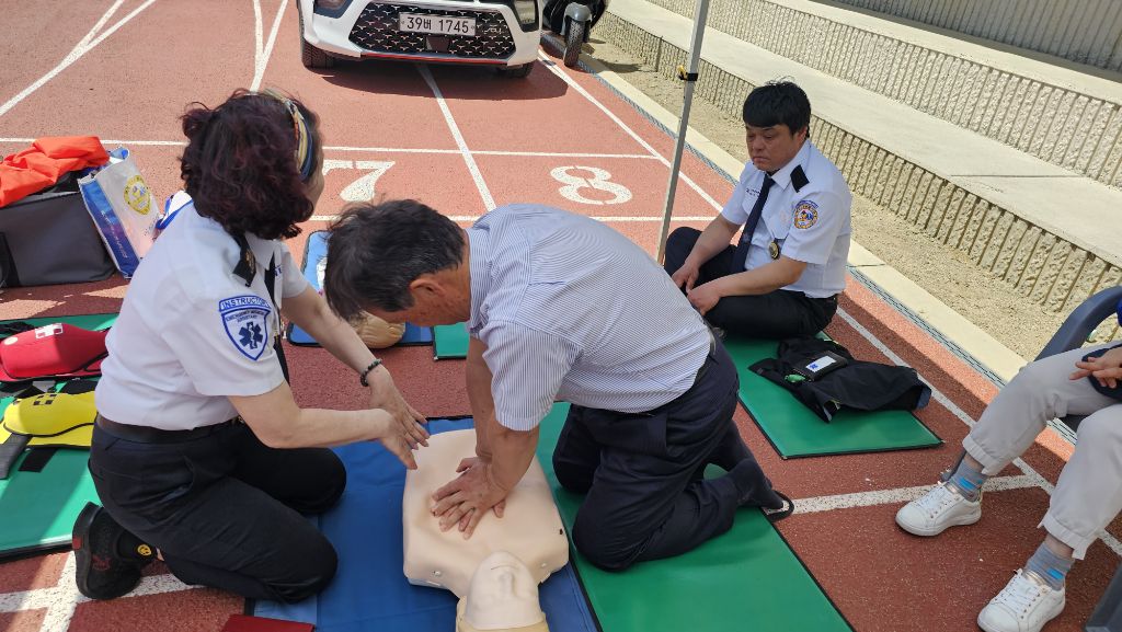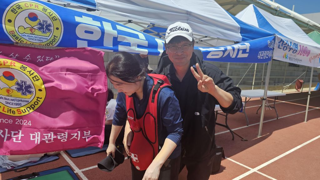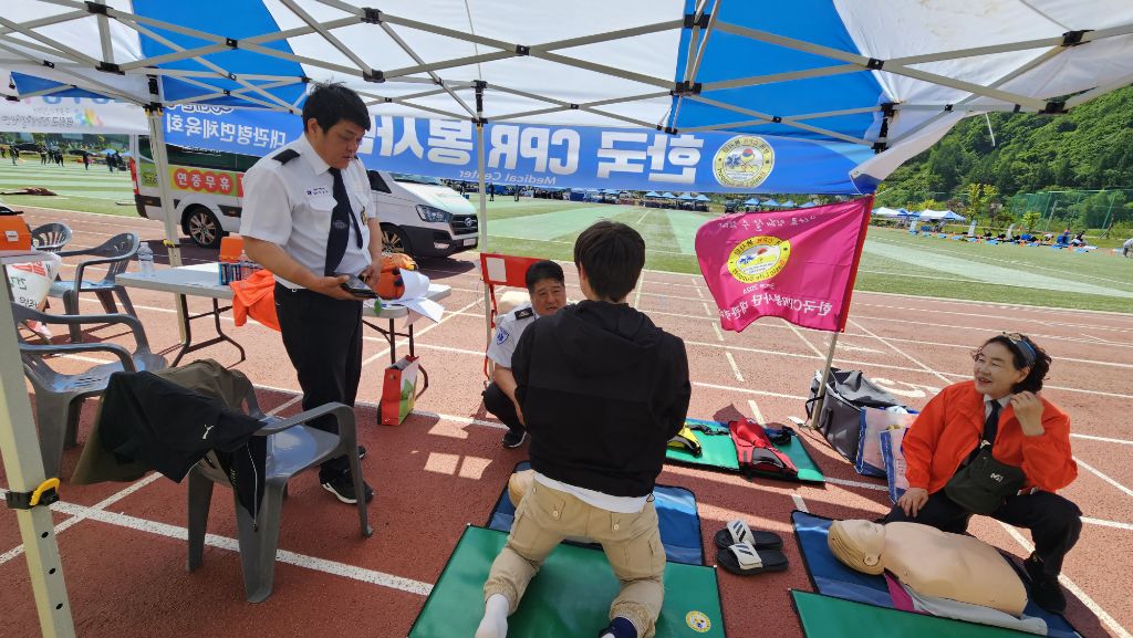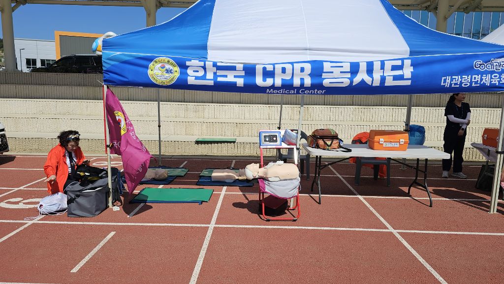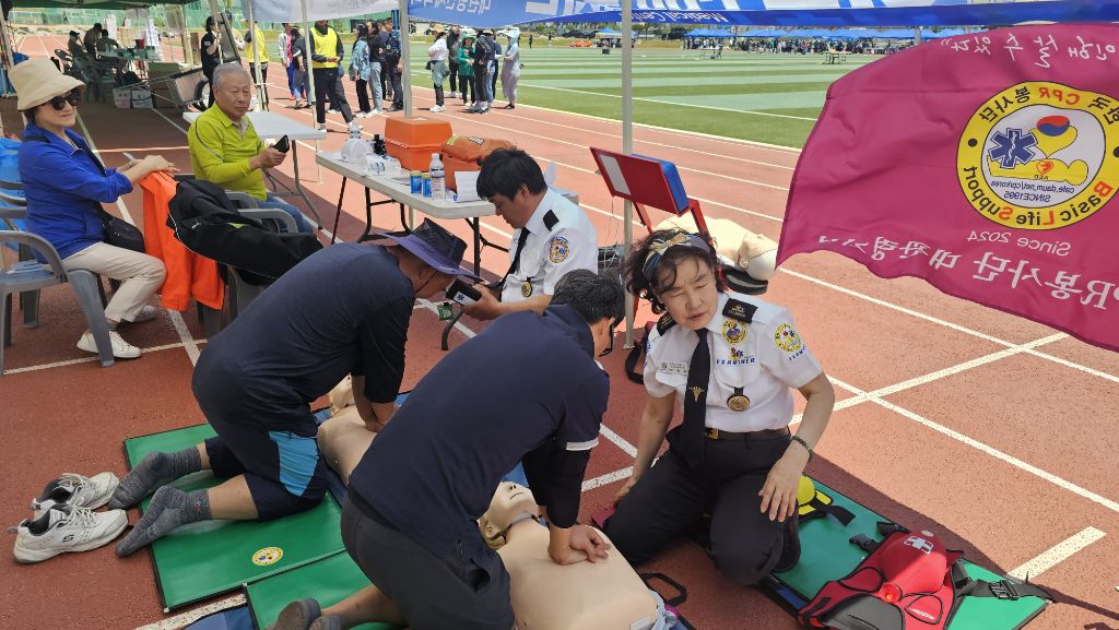지난 23일 평창군 대관령면 고원경기장에서 '2024 대관령면 체육회장기 직장체육대회' 에 참가 CPR체험부스를 찾은 대상자로 제1024차 CPR특강(체험교실)을 실시