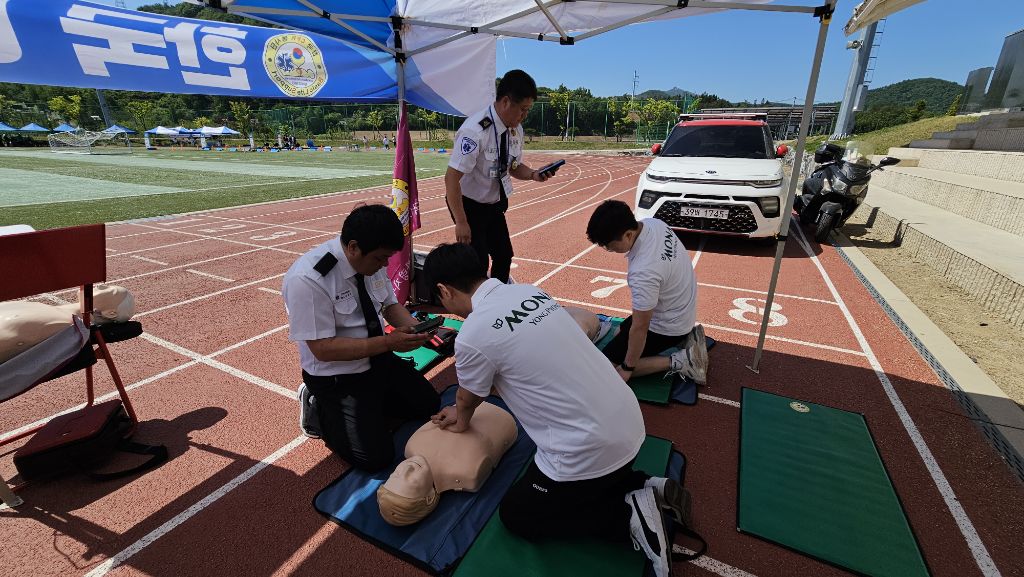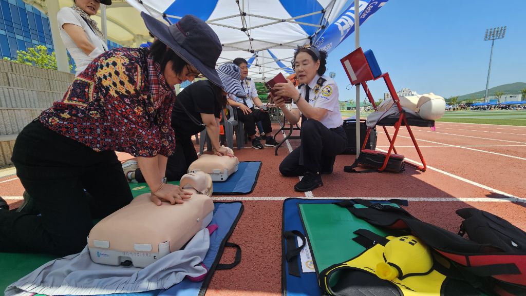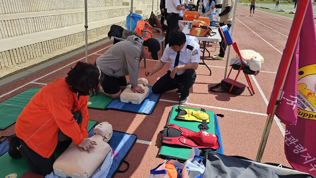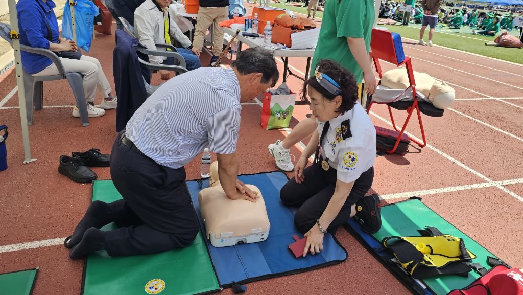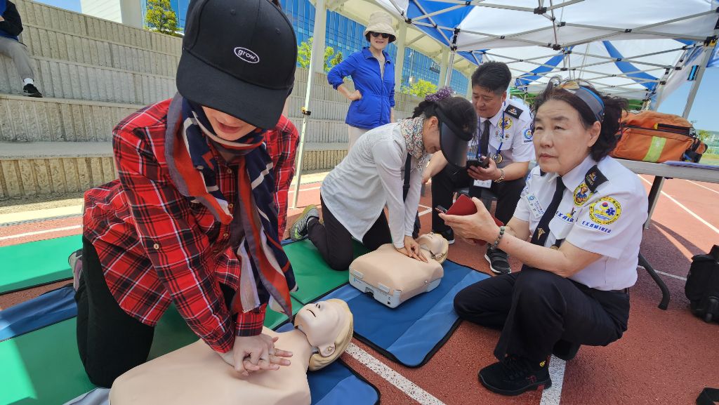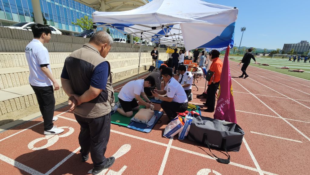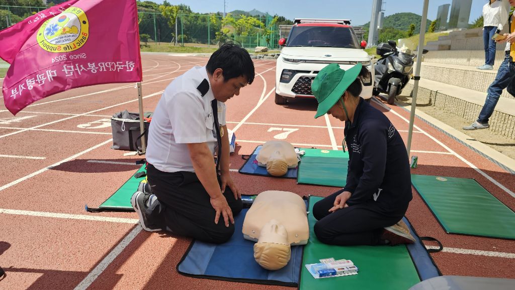 지난 23일 평창군 대관령면 고원경기장에서 '2024 대관령면 체육회장기 직장체육대회' 에 참가 CPR체험부스를 찾은 대상자로 제1024차 CPR특강(체험교실)을 실시