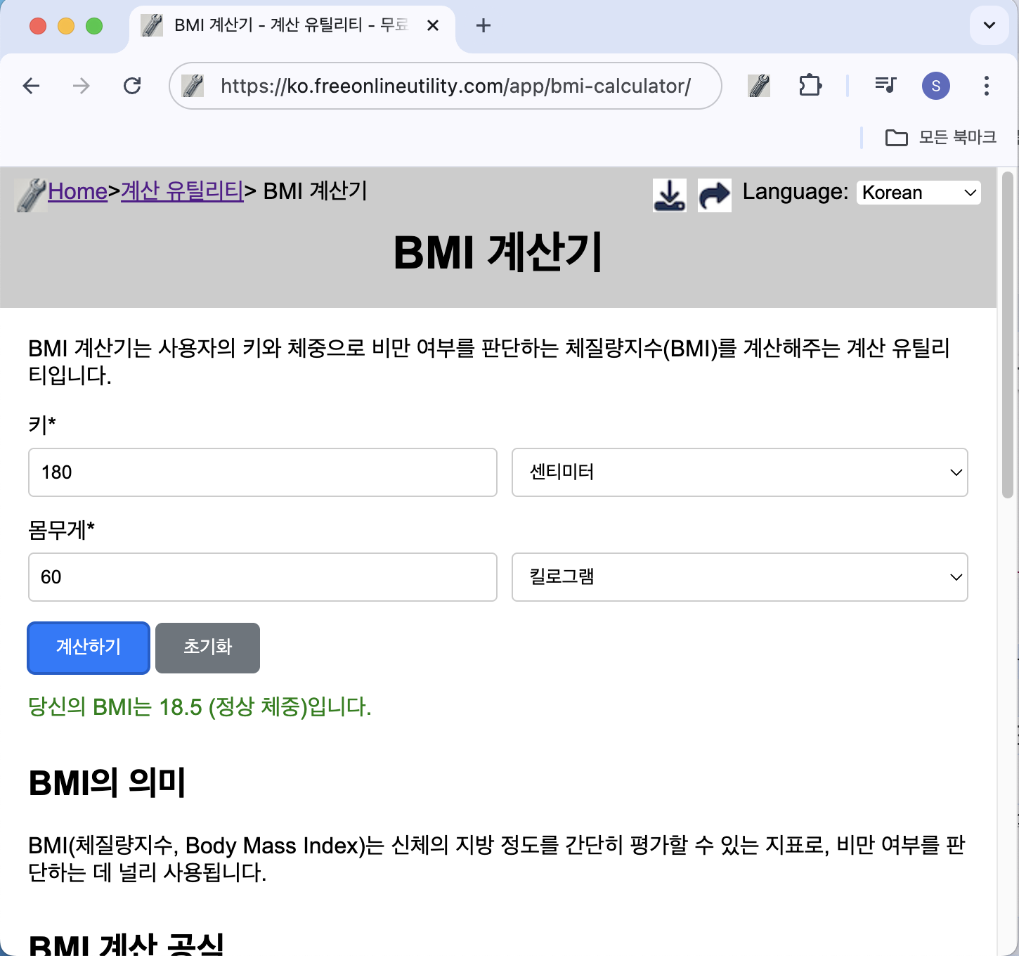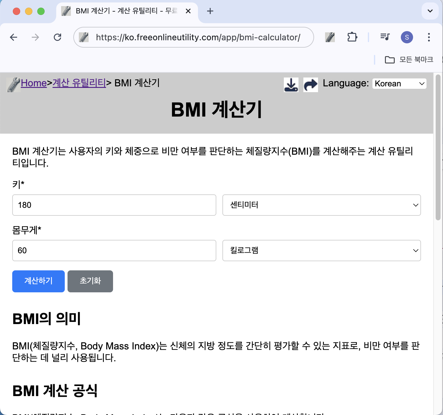 무료 BMI 계산기 가기