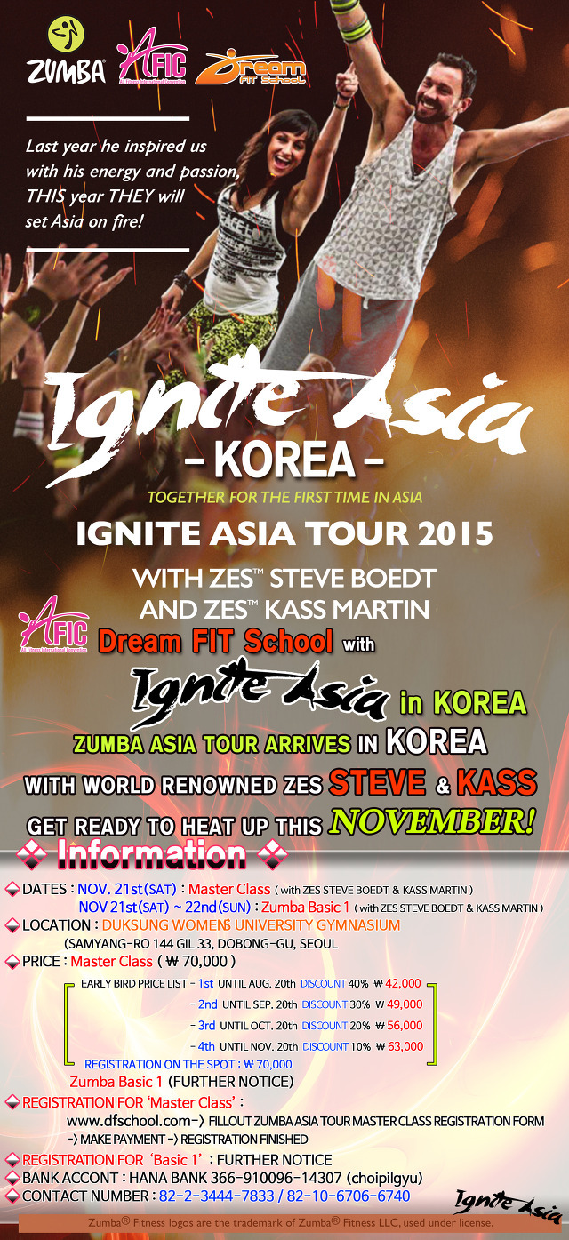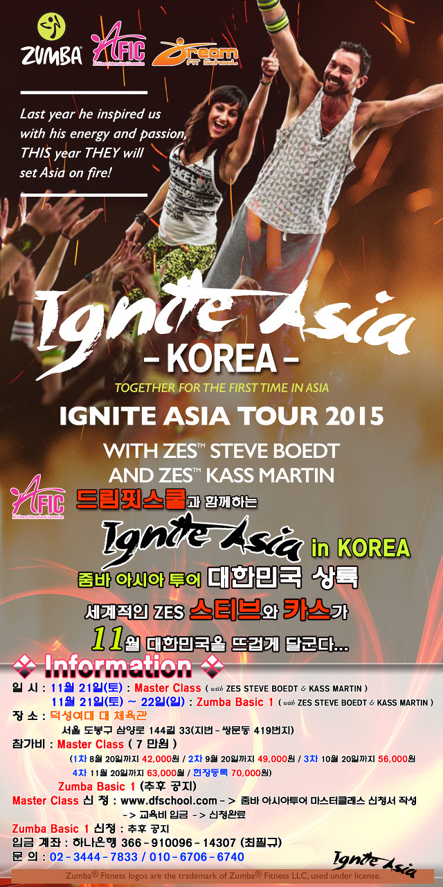[인기 TOP ZES Steve & Kass-Zumba Master Class] 2015. 11/21(토) Pm 7:00~9:00 <~일정에 따른 할인률 적용!!>