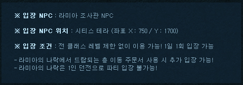 1인 던전 라미아의 나락! 던전 특성에 맞춰 대기표 시스템이 적용되는