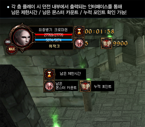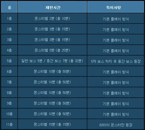 제한 시간 내에 몬스터를 모두 처치하지 못하는 경우 던전 클리어 실패