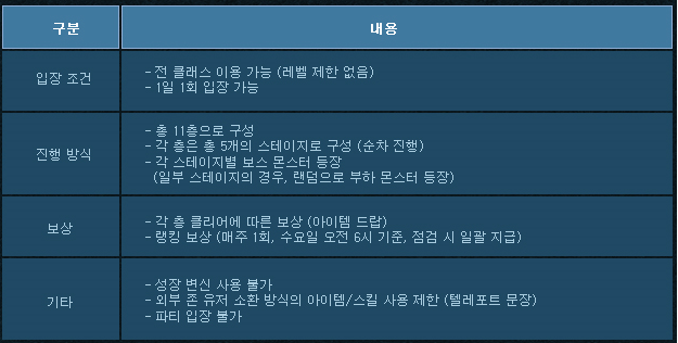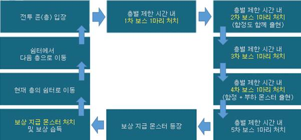 층을 올라갈수록 난이도가 상승하며, 출현 보스 및 함정도 달라집니다.