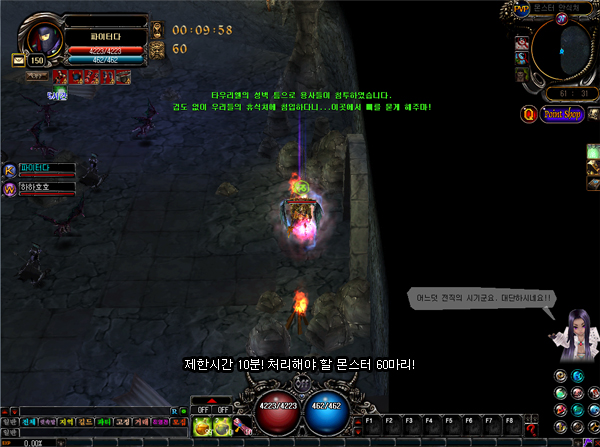 입장하자마자 제한시간 10이 걸려있고 몬스터 60마리가