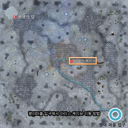 아이스케이브 이동 방법 : 평야 마을 -> 설산 지역 -> 아이스 케이브
