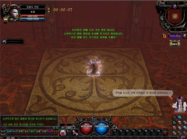 5. 방해 몬스터 25마리와 보스 몬스터의 등장!! 제한시간은 4분입니다. 4분안에 클리어해야 보상을 획득할 수 있습니다.