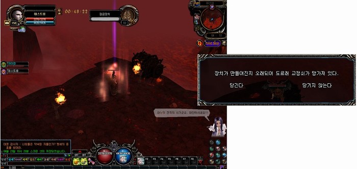 잠금장치는 눈에 잘 띄지 않습니다. 데몬 감시자NPC가 바라보는 방향에 설치되어 있으니 잘 찾아 주세요 (좌표 : 66, 51)잠금장치를 클릭하여 아래와 같은 메시지가 나오면 당긴다 클릭!!