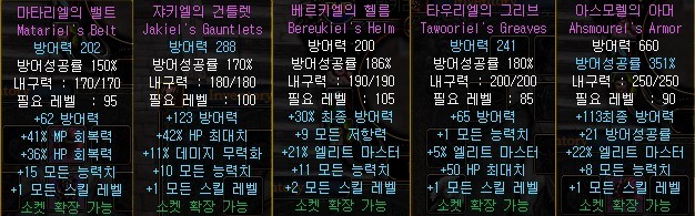 5셋을 모두 착용할 경우 3셋 옵션이 포함된 총 6개의 셋트 옵션이 붙습니다. |
