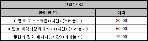 이벤트 기간 크레딧 샵 버프 아이템이 추가됩니다.