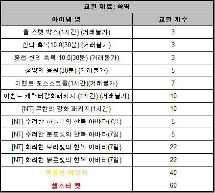 ■ 쑥떡 조합 방법 (NPC 아이템 교환)