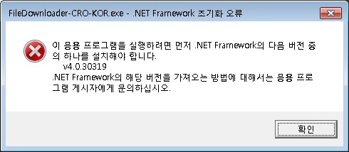 윈도우7 설치후 게임을 받으려고 하면 위와같이 net framework 4.0.30319 오류가 나면서 실행이 되지 않습니다.