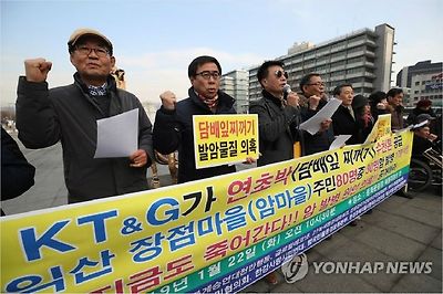 ◆ 손수호> 그렇습니다. 미세먼지, 냄새. 이런 것보다도 훨씬 더 심각해요. 이틀 전에 한 시민 단체가 기자 회견 열었거든요. KT&G를 상대로요. 전북 익산시 장점 마을 인근의 비료 공장 폐기물 은폐 의혹을 밝혀라.