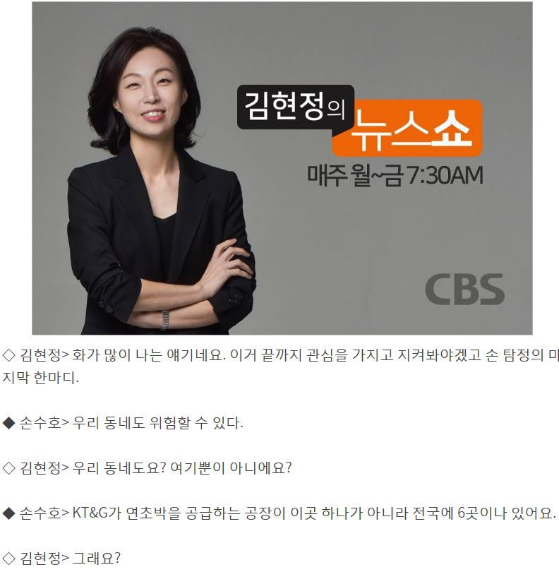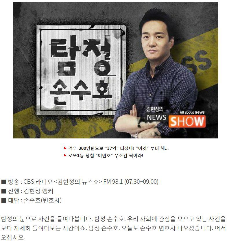 ■ 방송 : CBS 라디오 <김현정의 뉴스쇼> FM 98.1 (07:30~09:00)