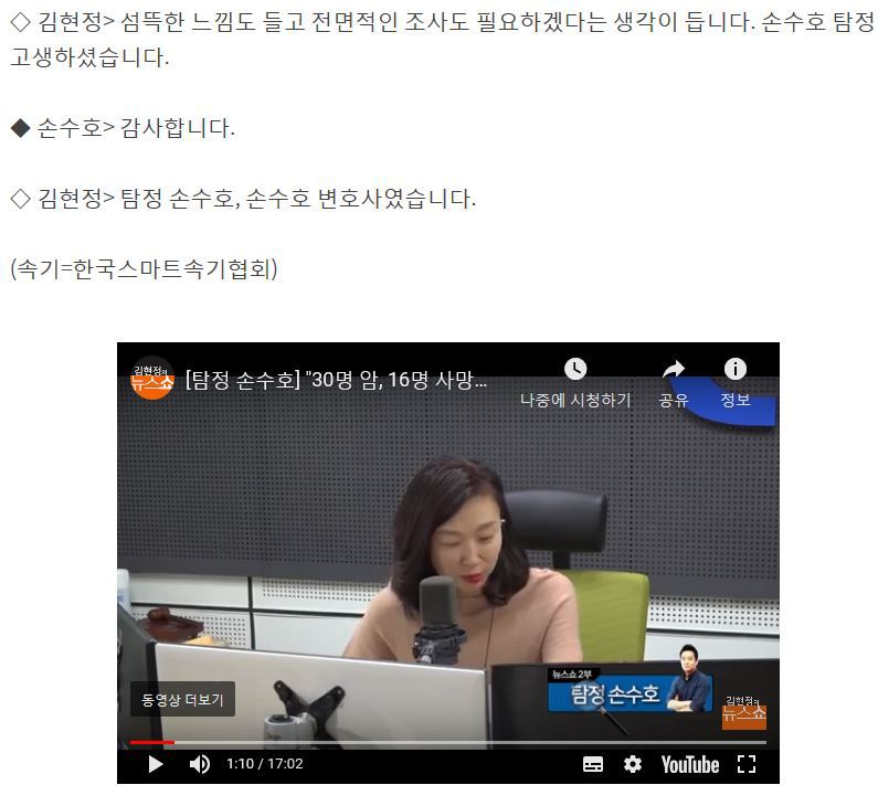 ◇ 김현정> 섬뜩한 느낌도 들고 전면적인 조사도 필요하겠다는 생각이 듭니다. 손수호 탐정 고생하셨습니다.