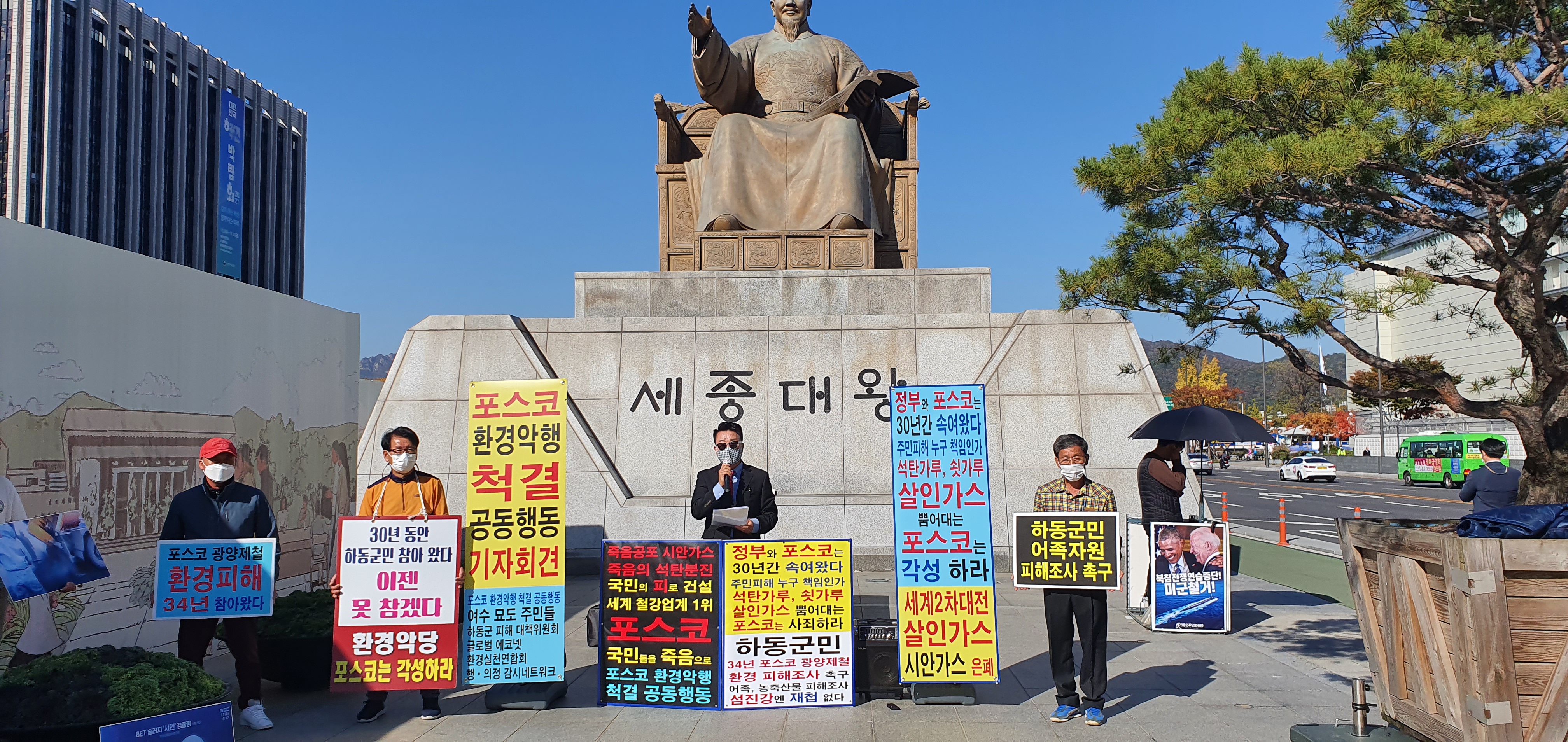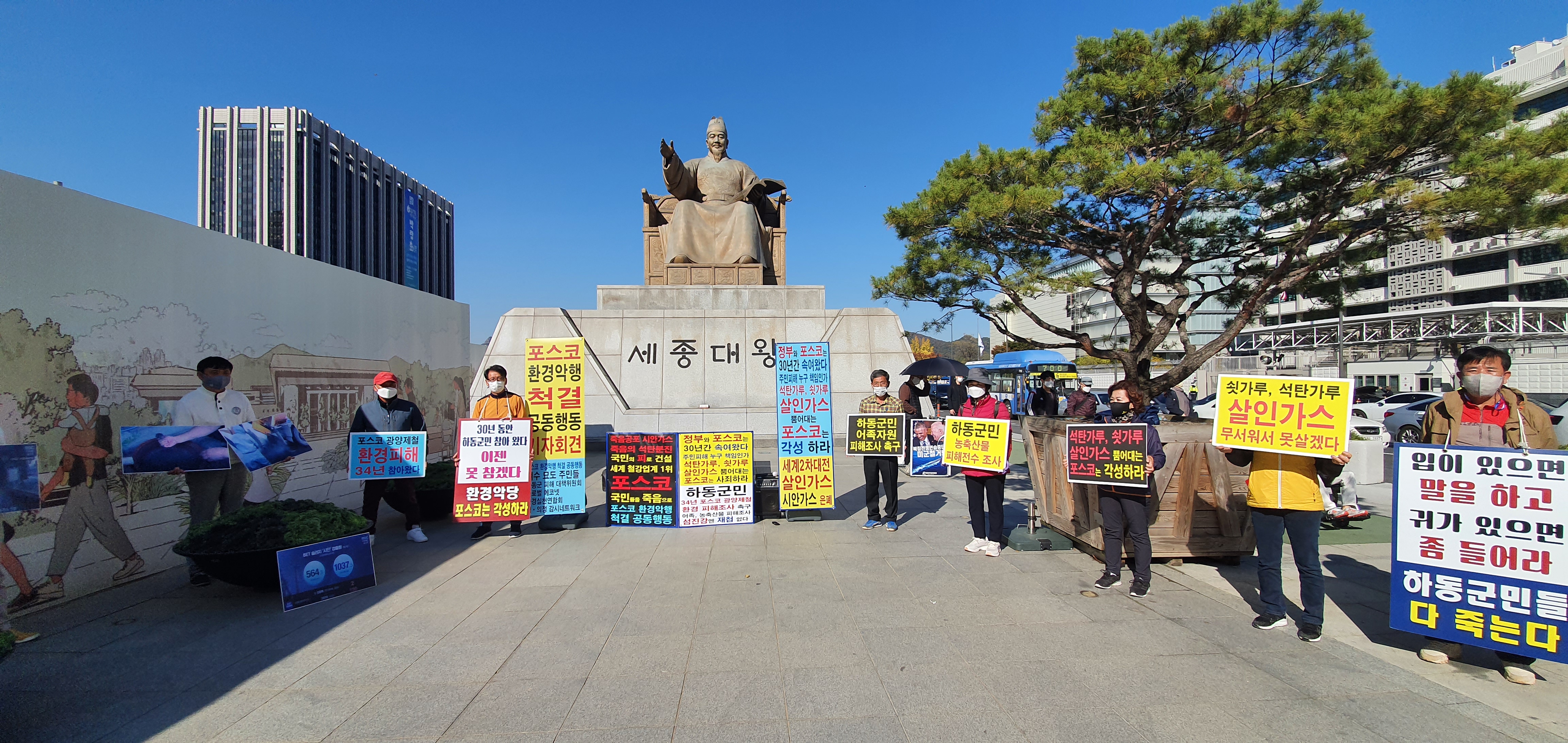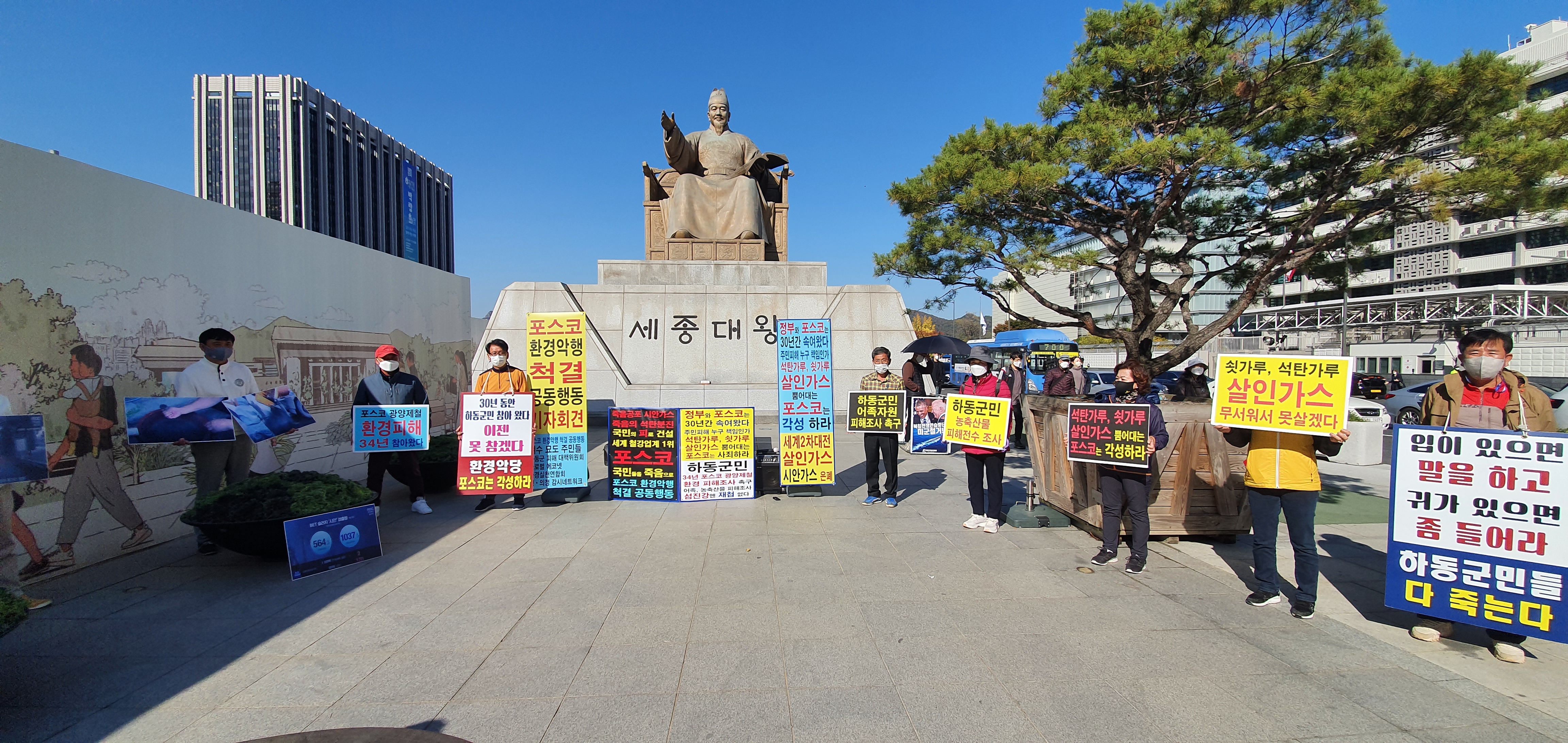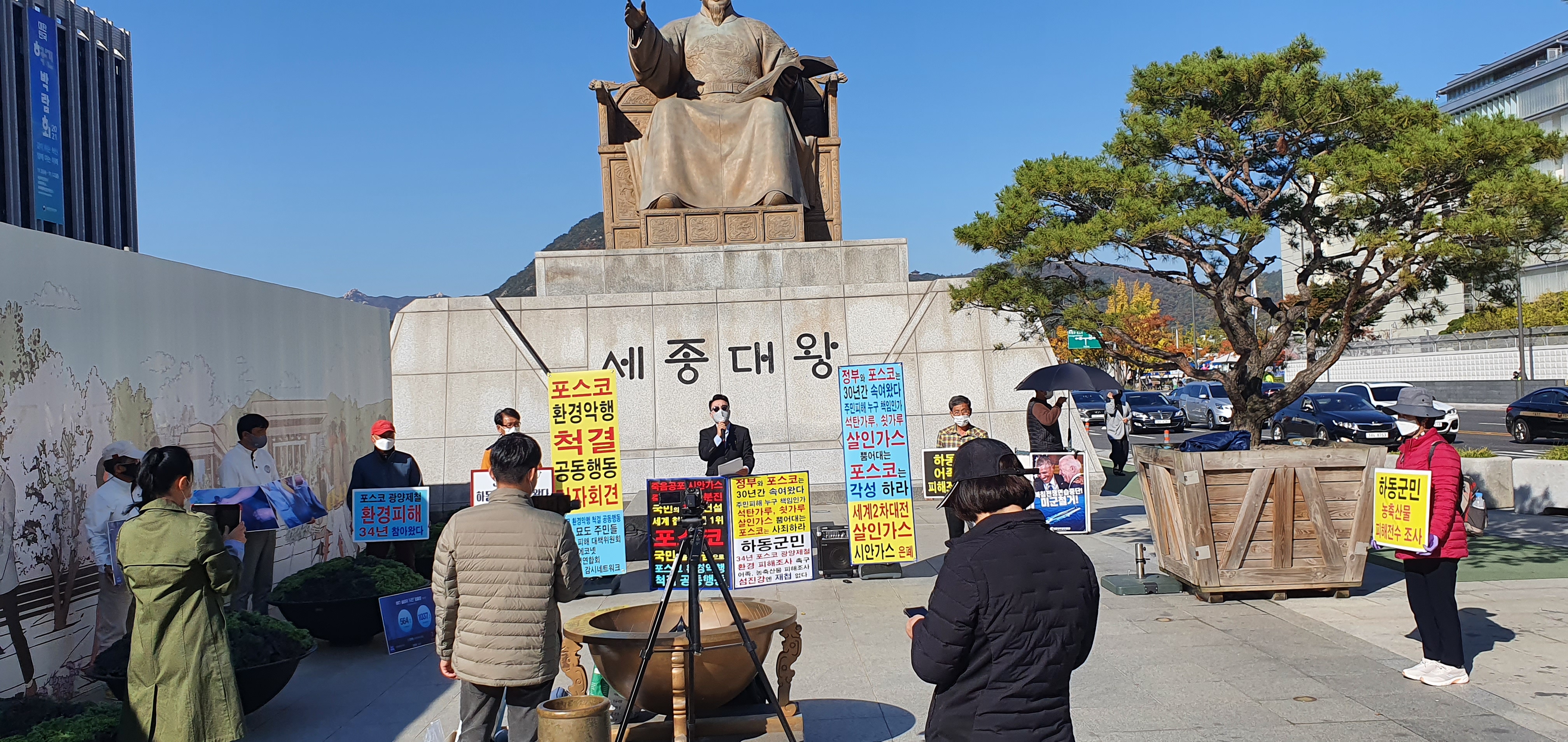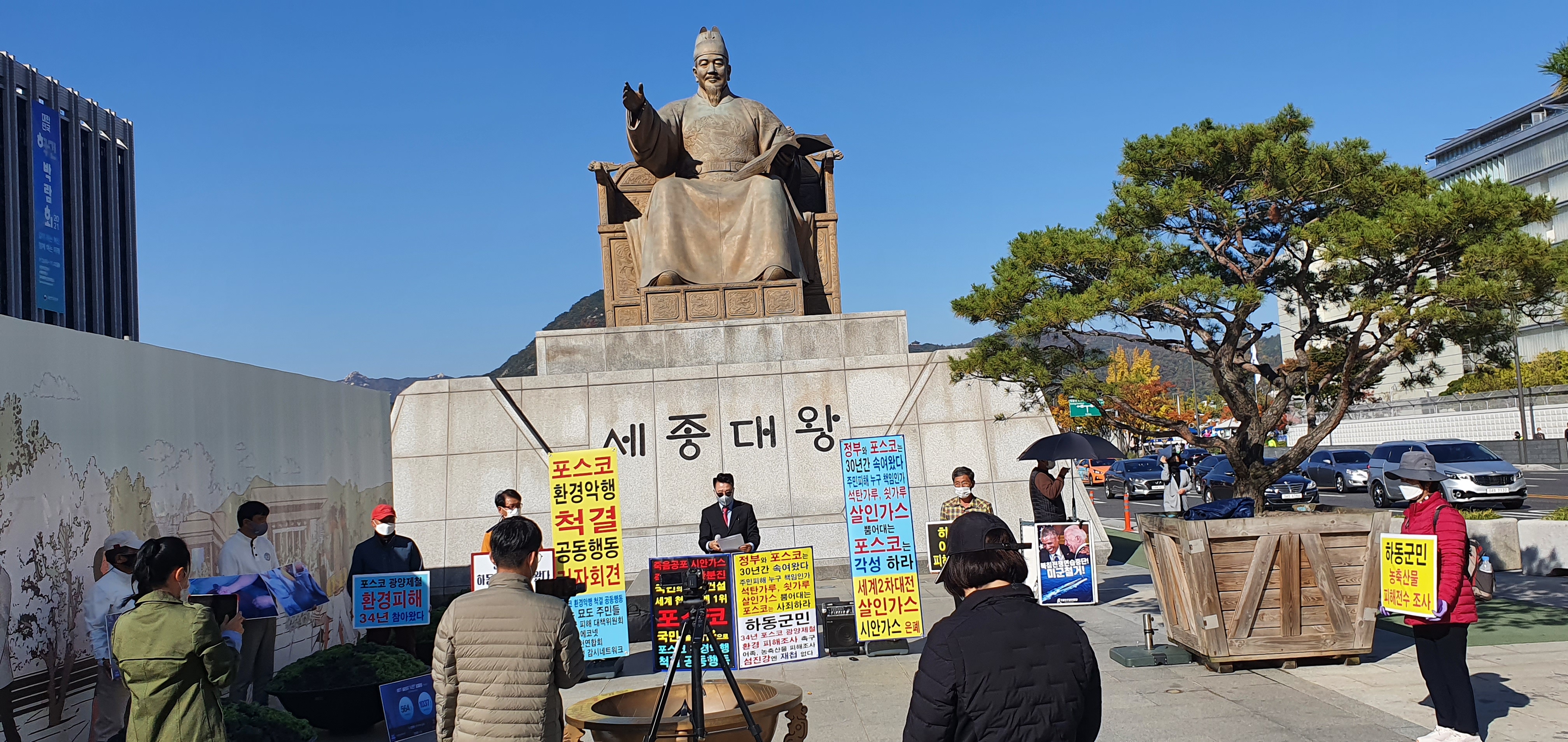 | - 일 시 : 2021. 10.28 (금) 오후2시 - 장 소 : 광화문 세종대왕 동상 앞 - 주 최 : 포스코 공동행동에는 전남 여수 묘도주민들, 포스코 광양제철소 하동군 피해 대책위원회, 글로벌에코넷, 행·의정 감시네트워크 중앙회 |