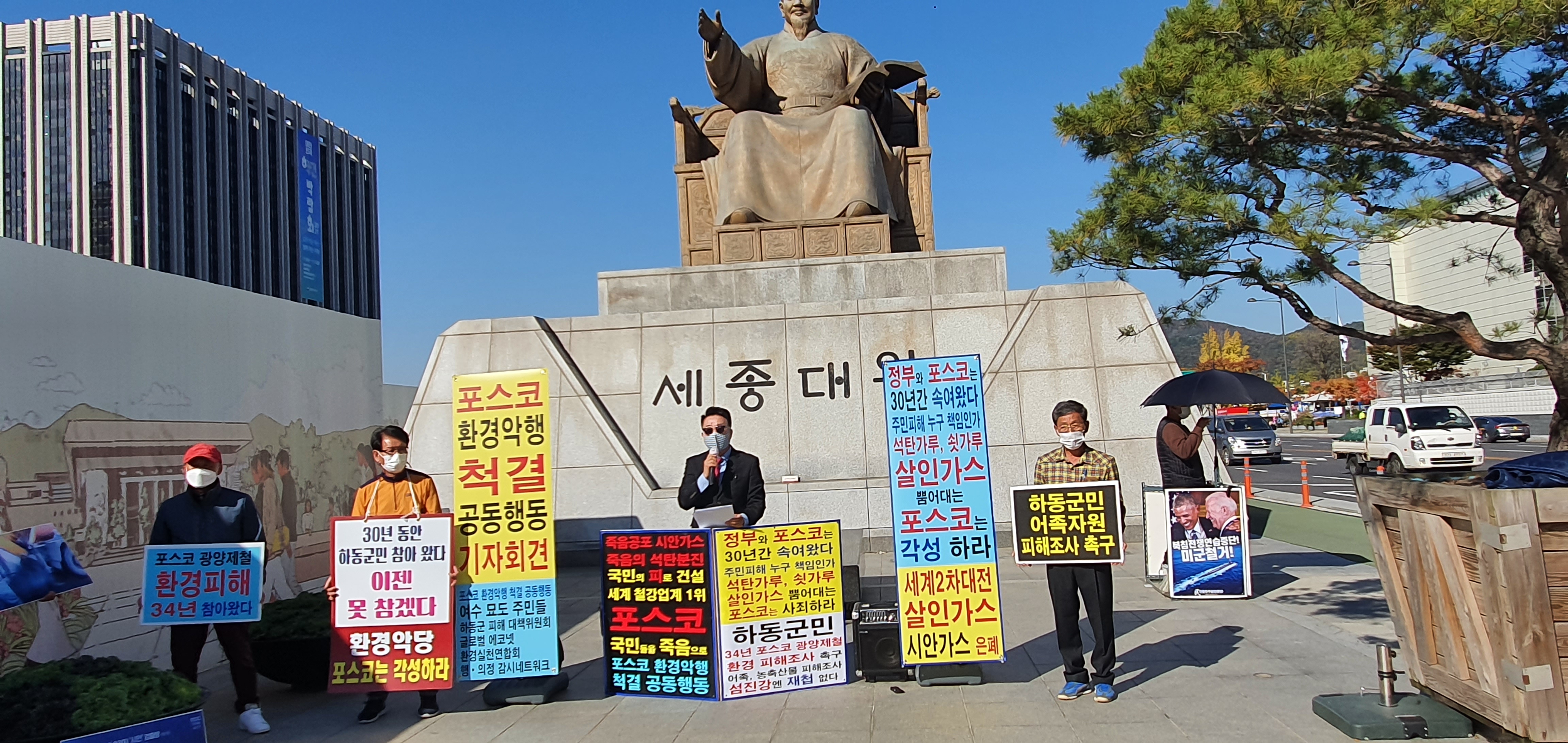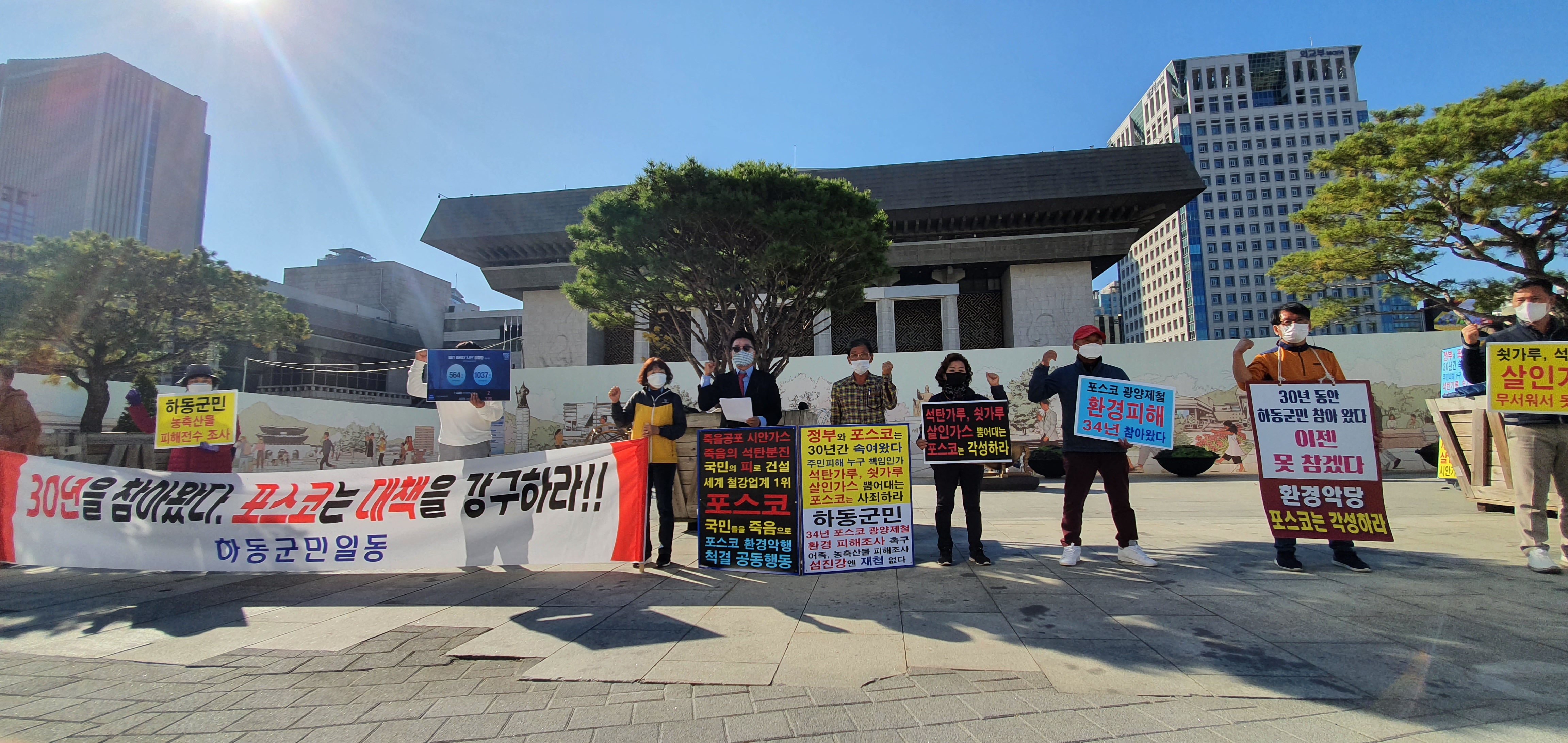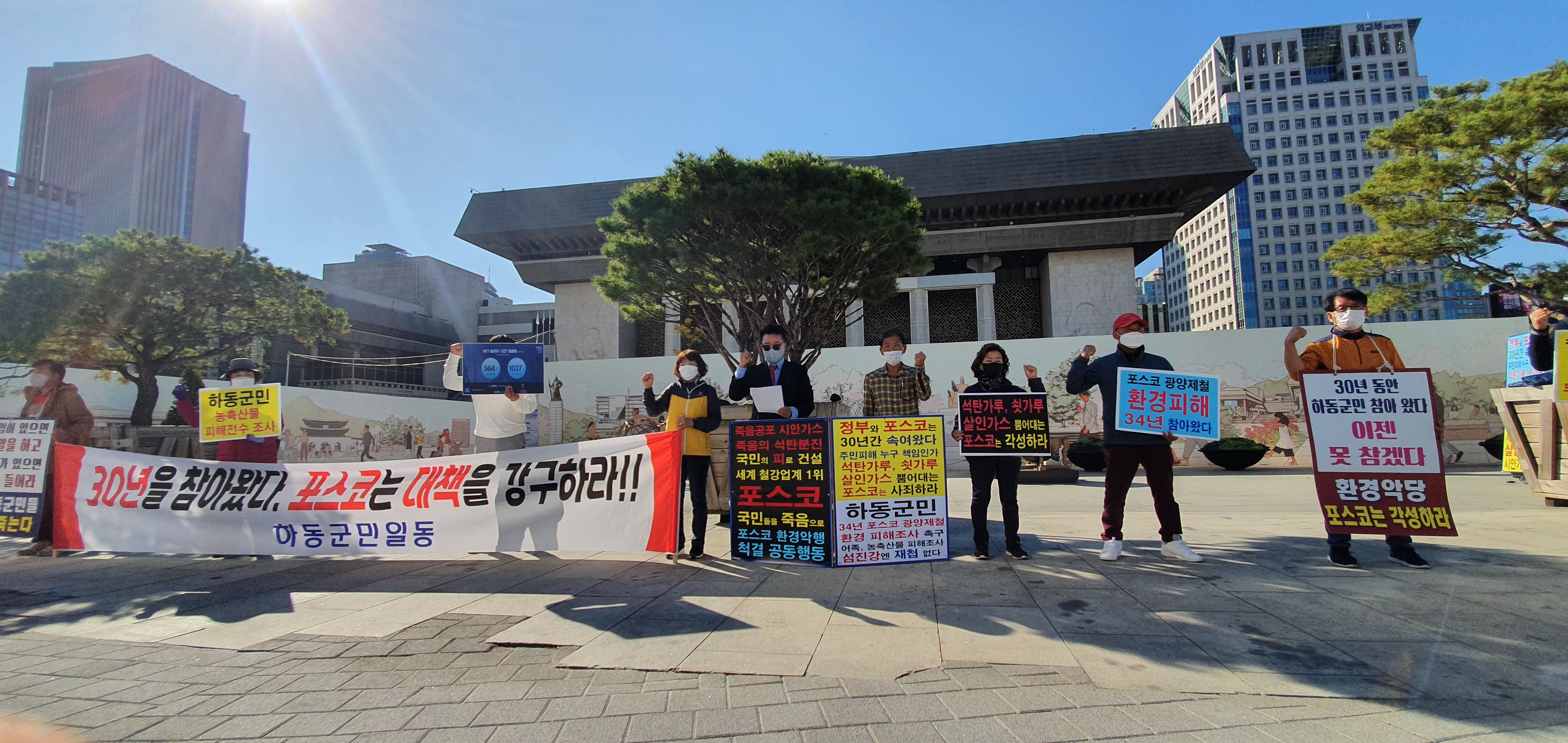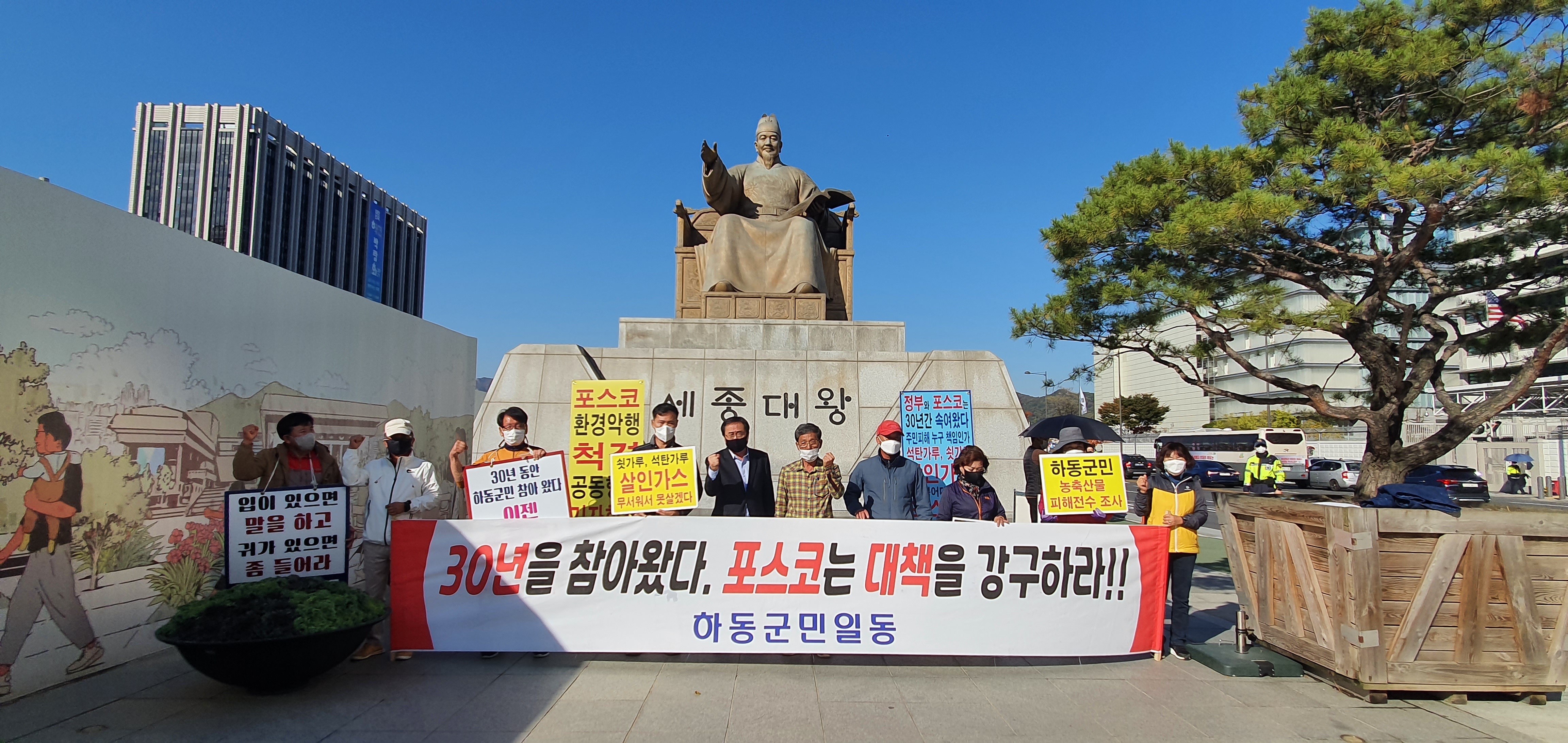 | - 일 시 : 2021. 10.28 (금) 오후2시 - 장 소 : 광화문 세종대왕 동상 앞 - 주 최 : 포스코 공동행동에는 전남 여수 묘도주민들, 포스코 광양제철소 하동군 피해 대책위원회, 글로벌에코넷, 행·의정 감시네트워크 중앙회 |