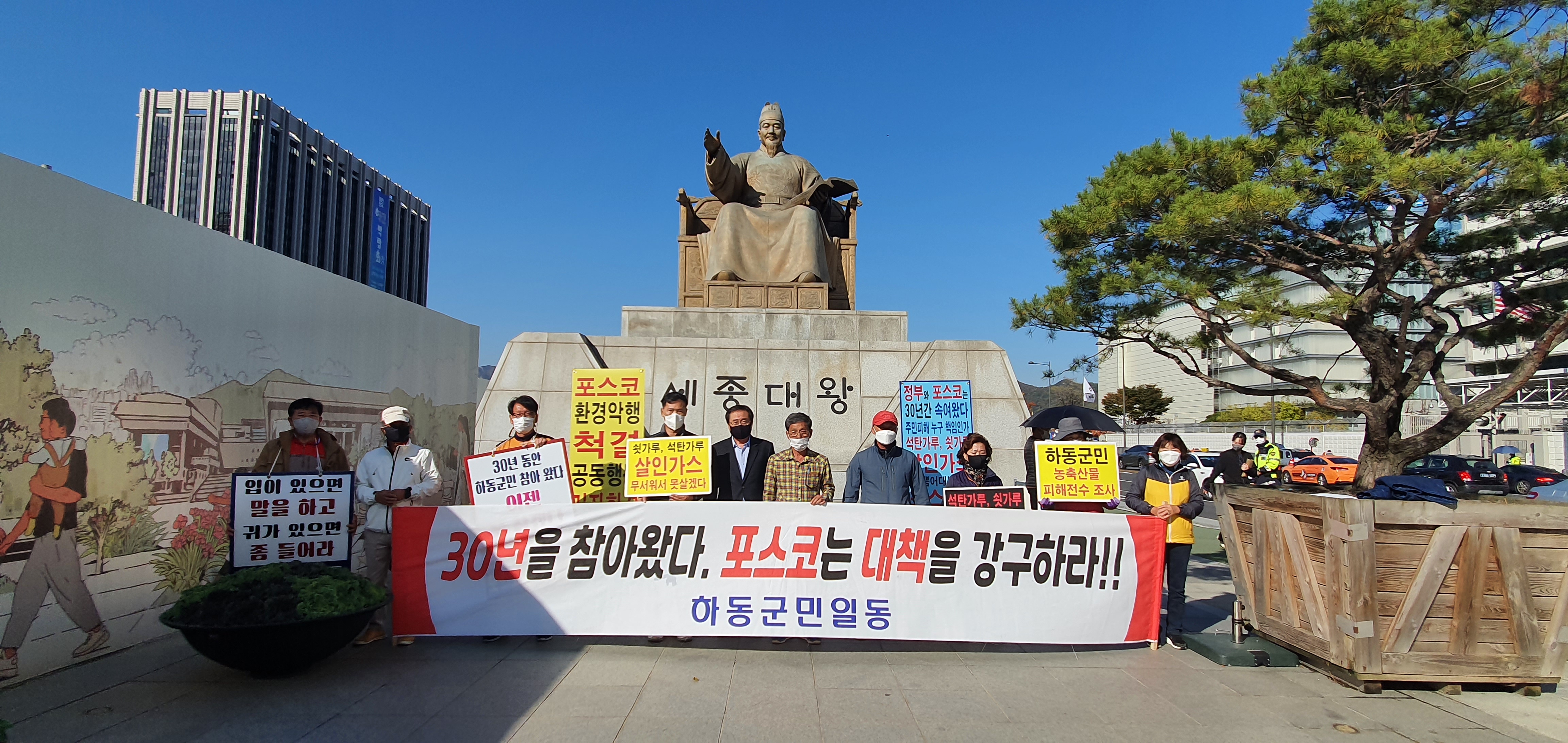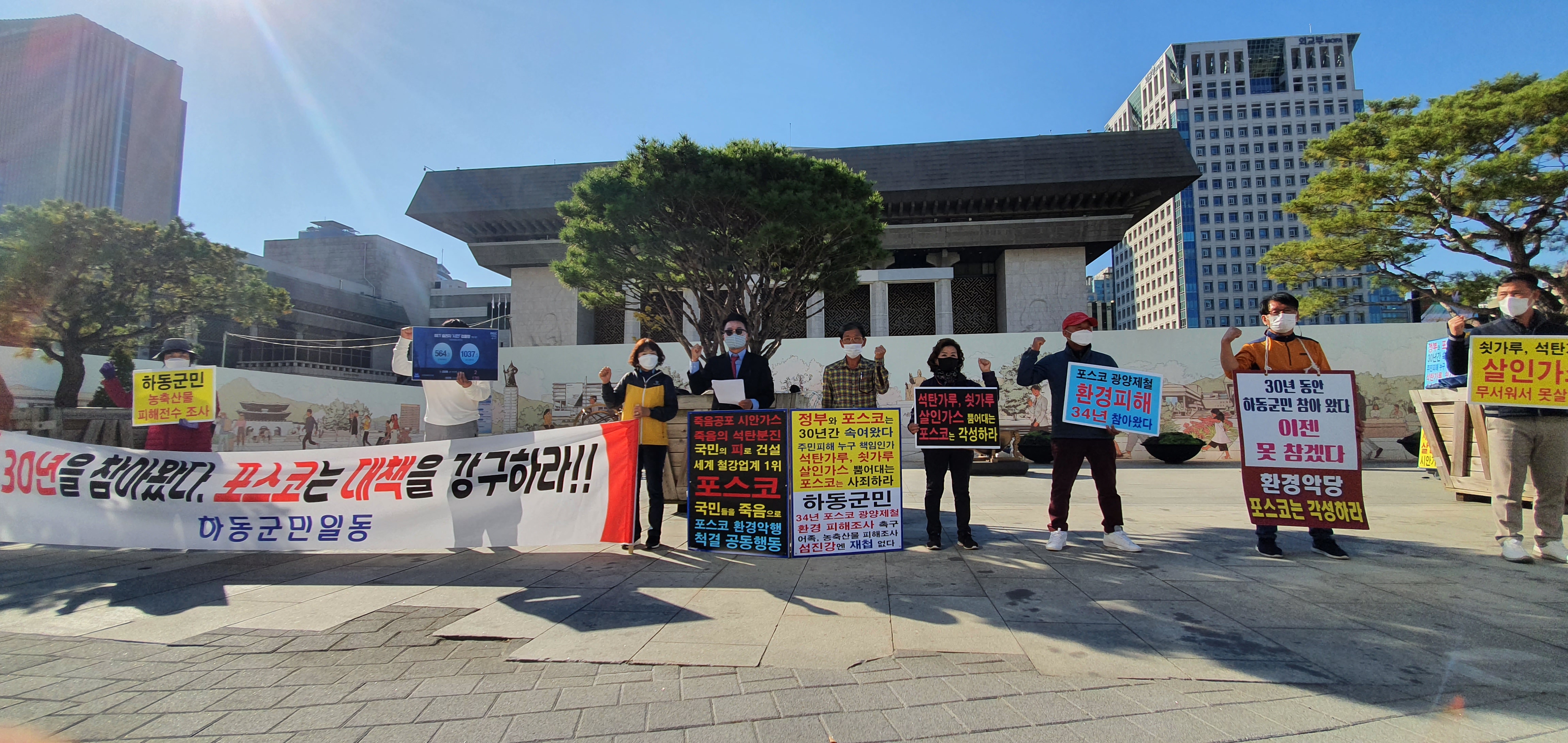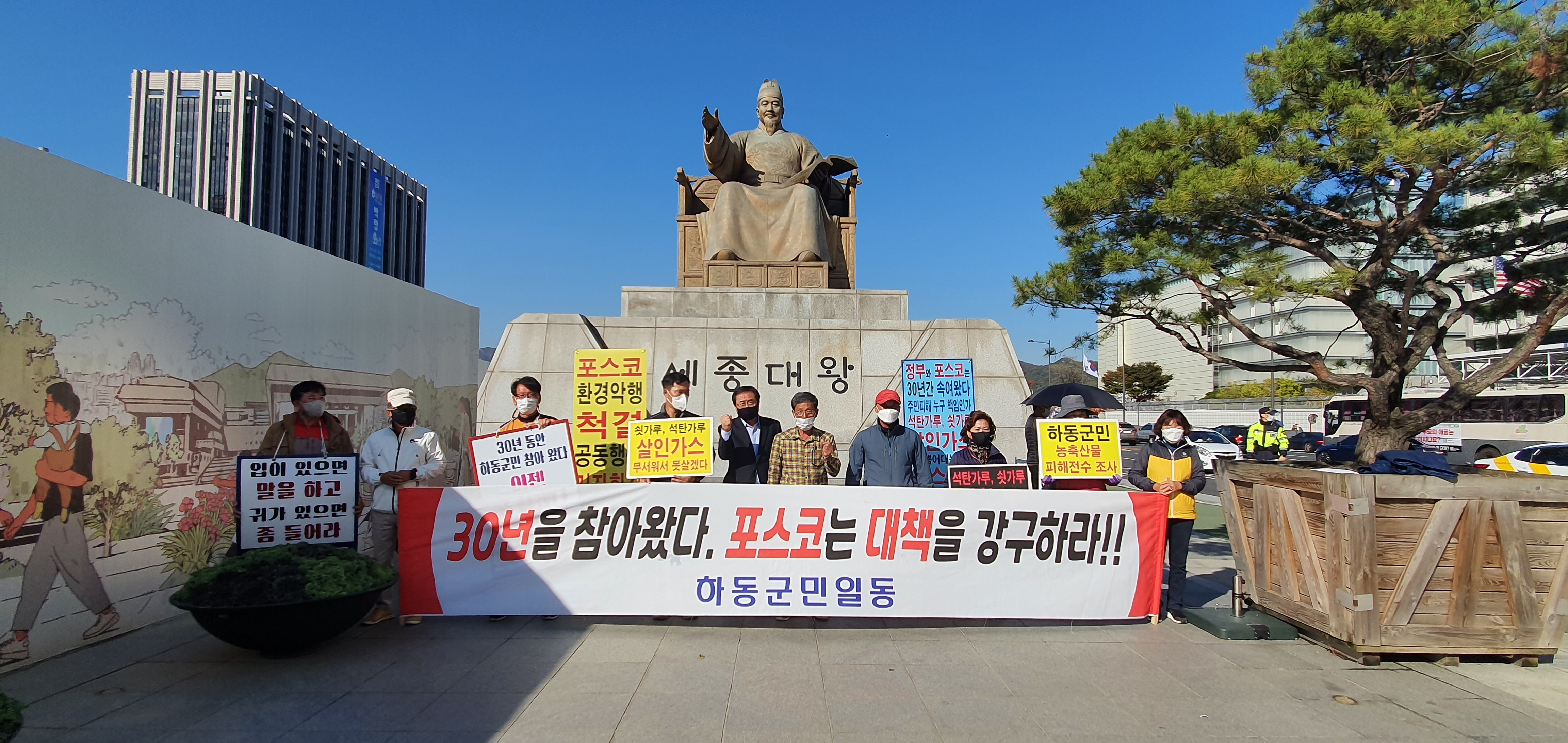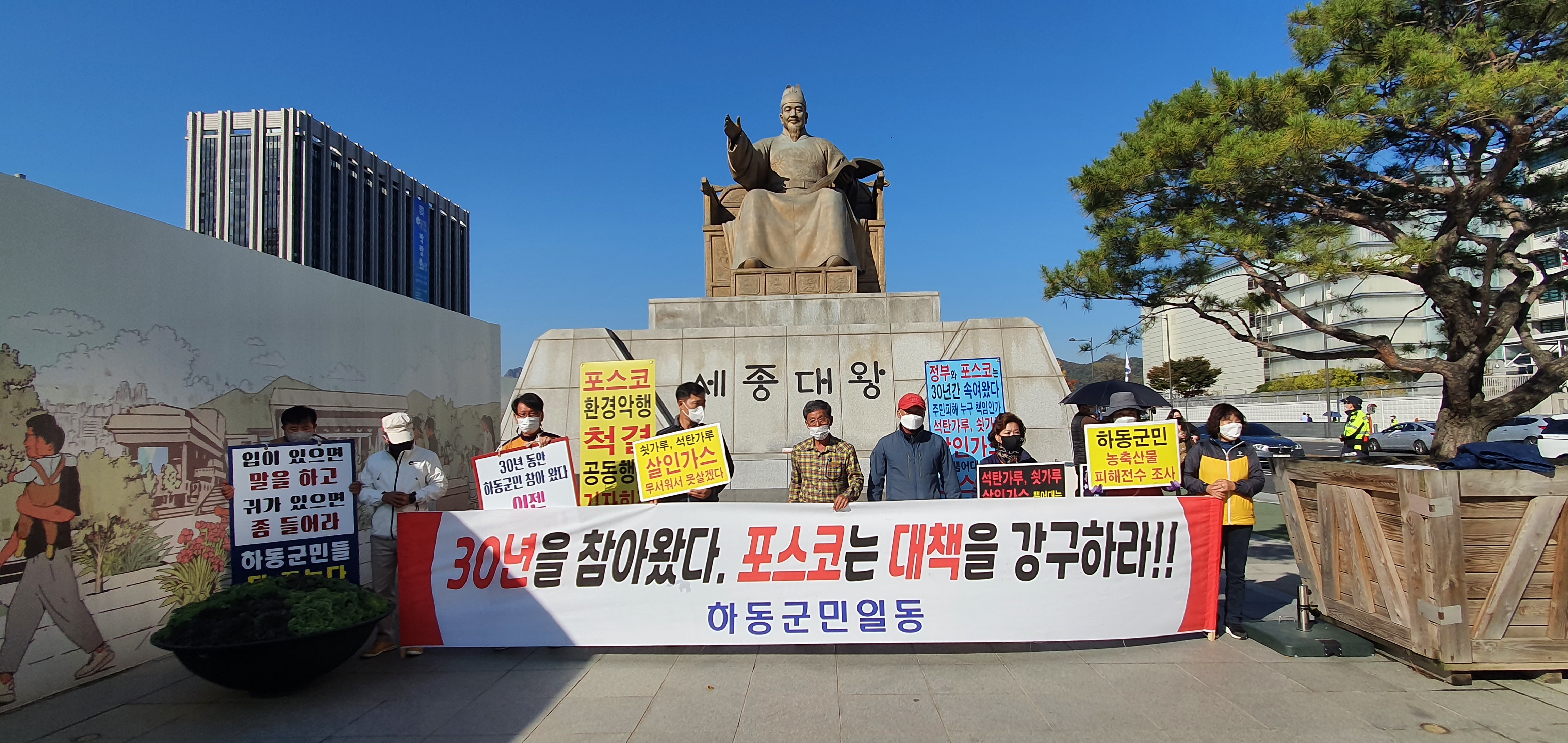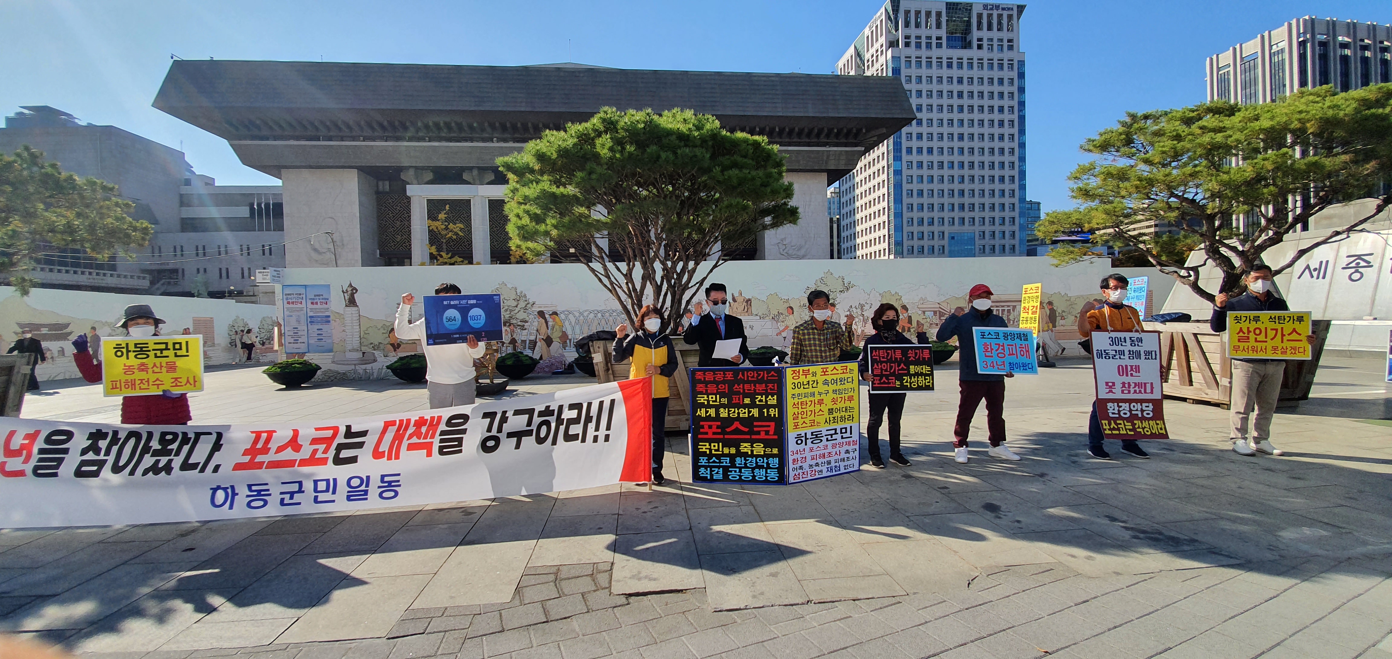 | - 일 시 : 2021. 10.28 (금) 오후2시 - 장 소 : 광화문 세종대왕 동상 앞 - 주 최 : 포스코 공동행동에는 전남 여수 묘도주민들, 포스코 광양제철소 하동군 피해 대책위원회, 글로벌에코넷, 행·의정 감시네트워크 중앙회 |
