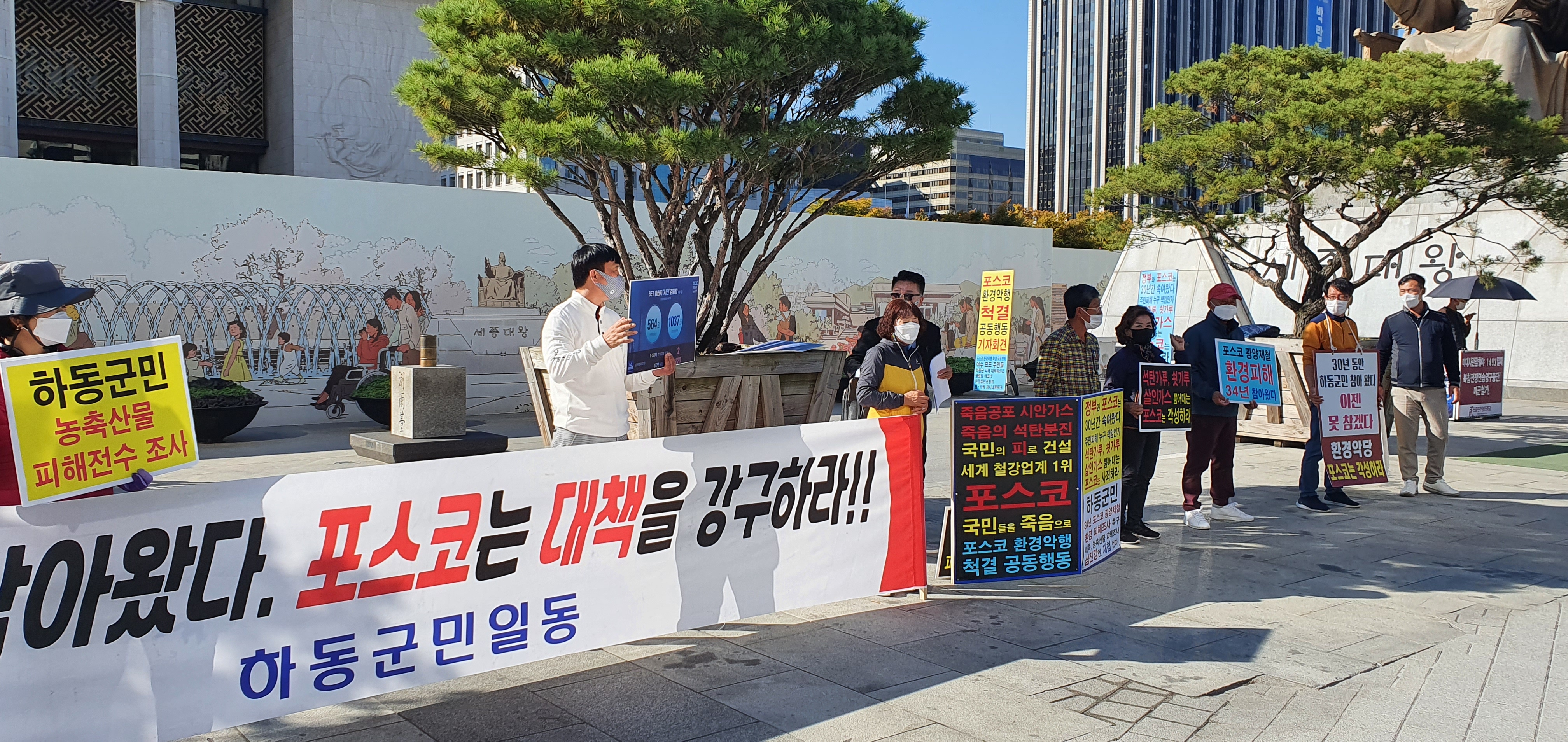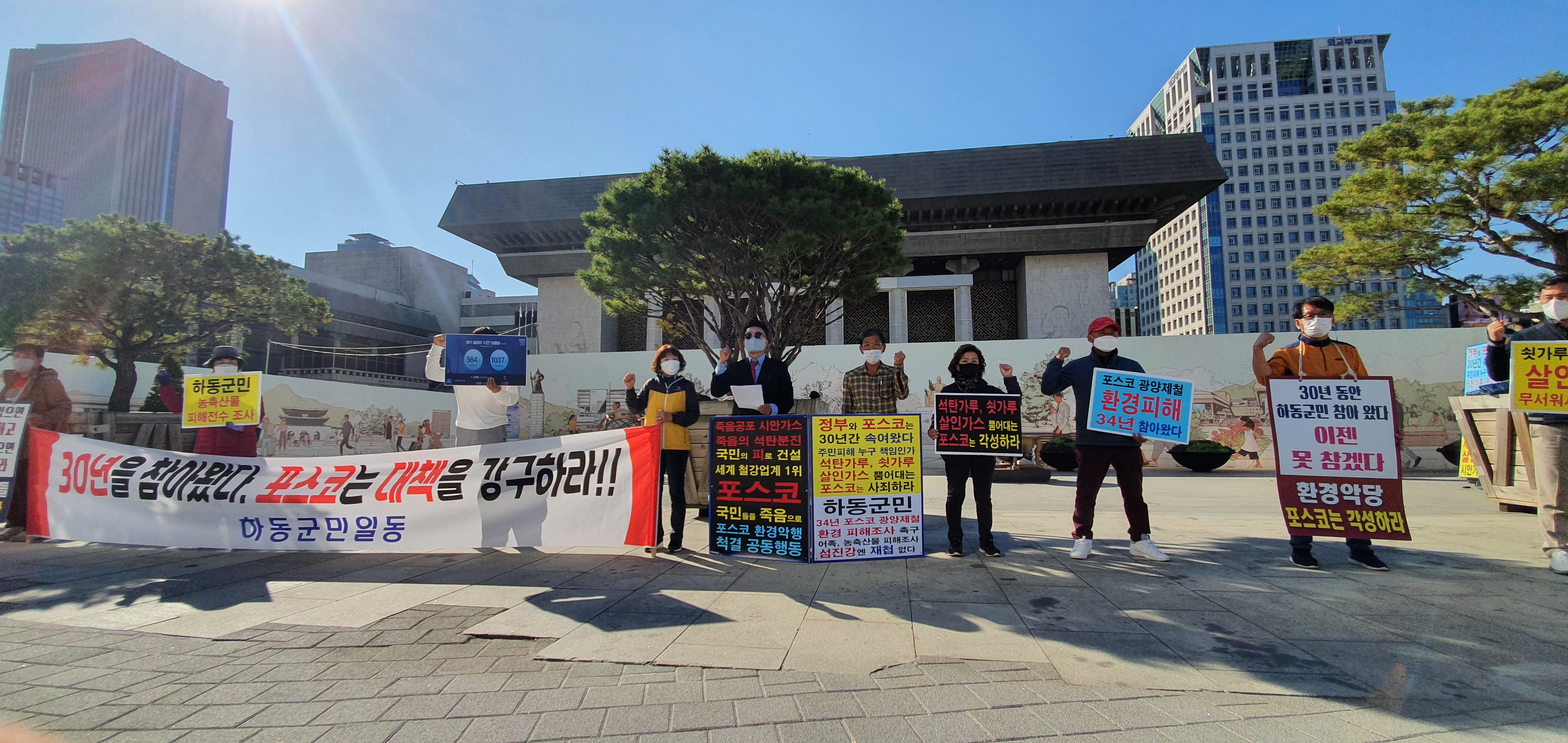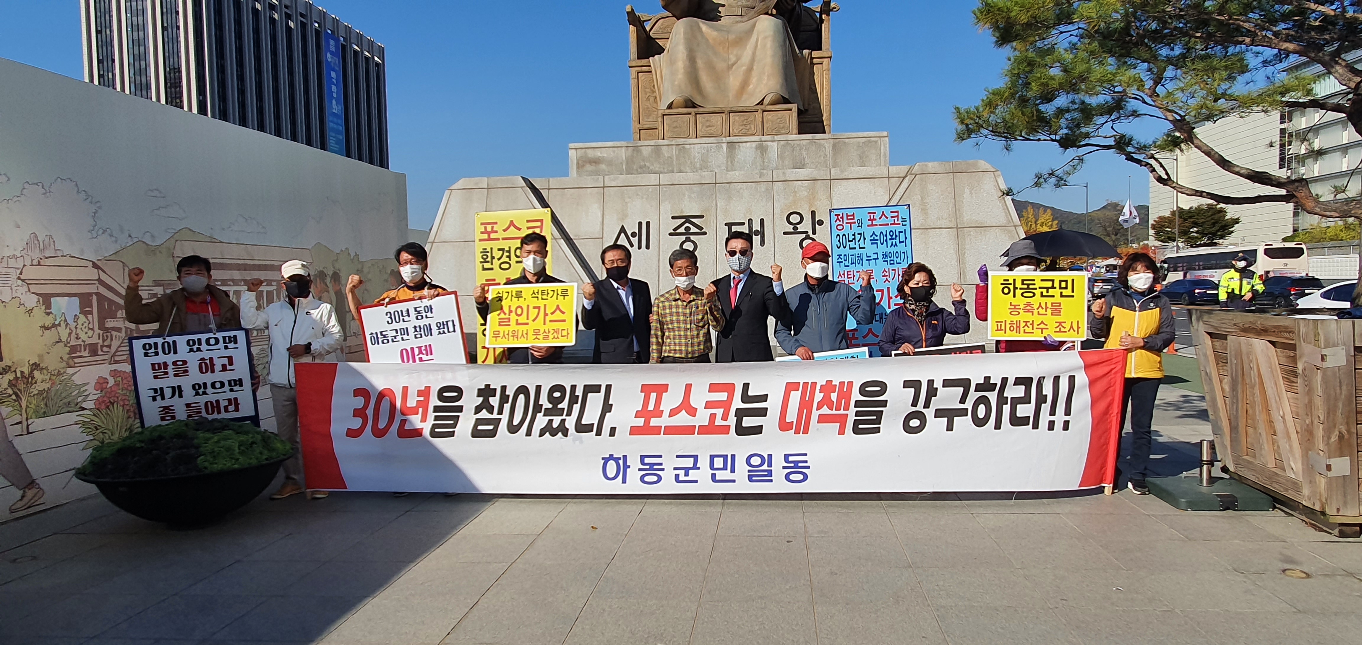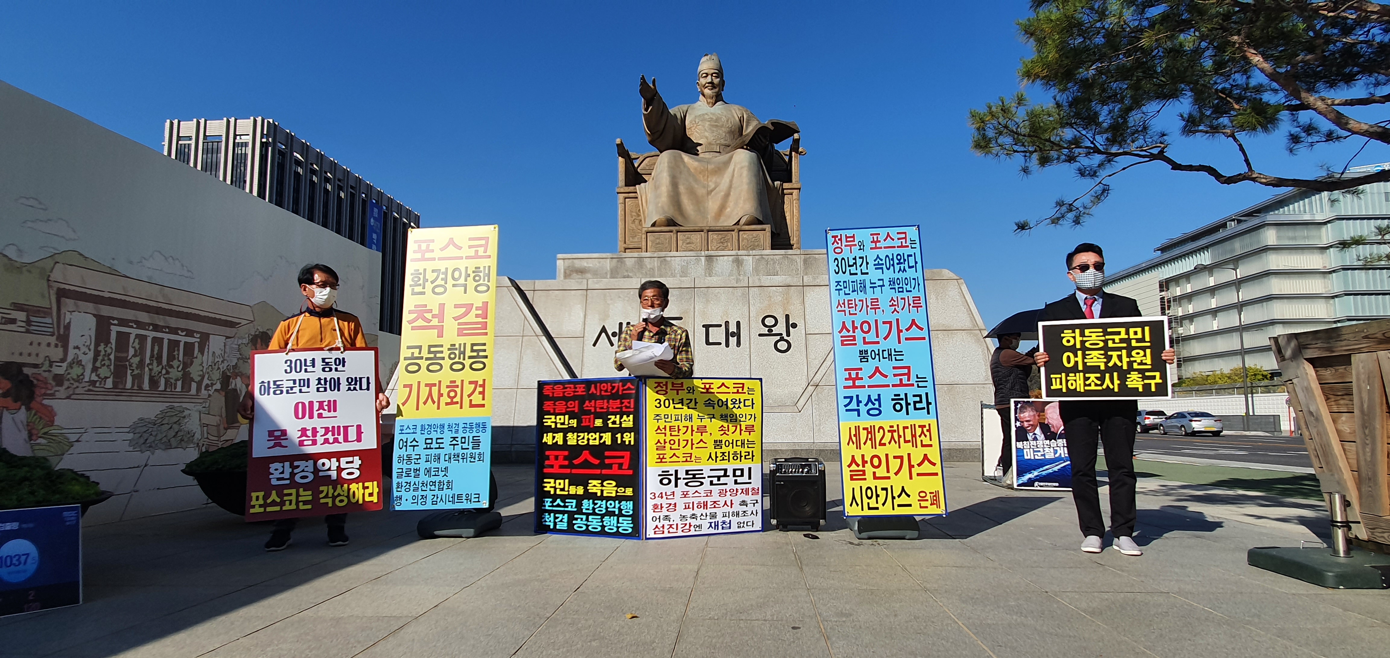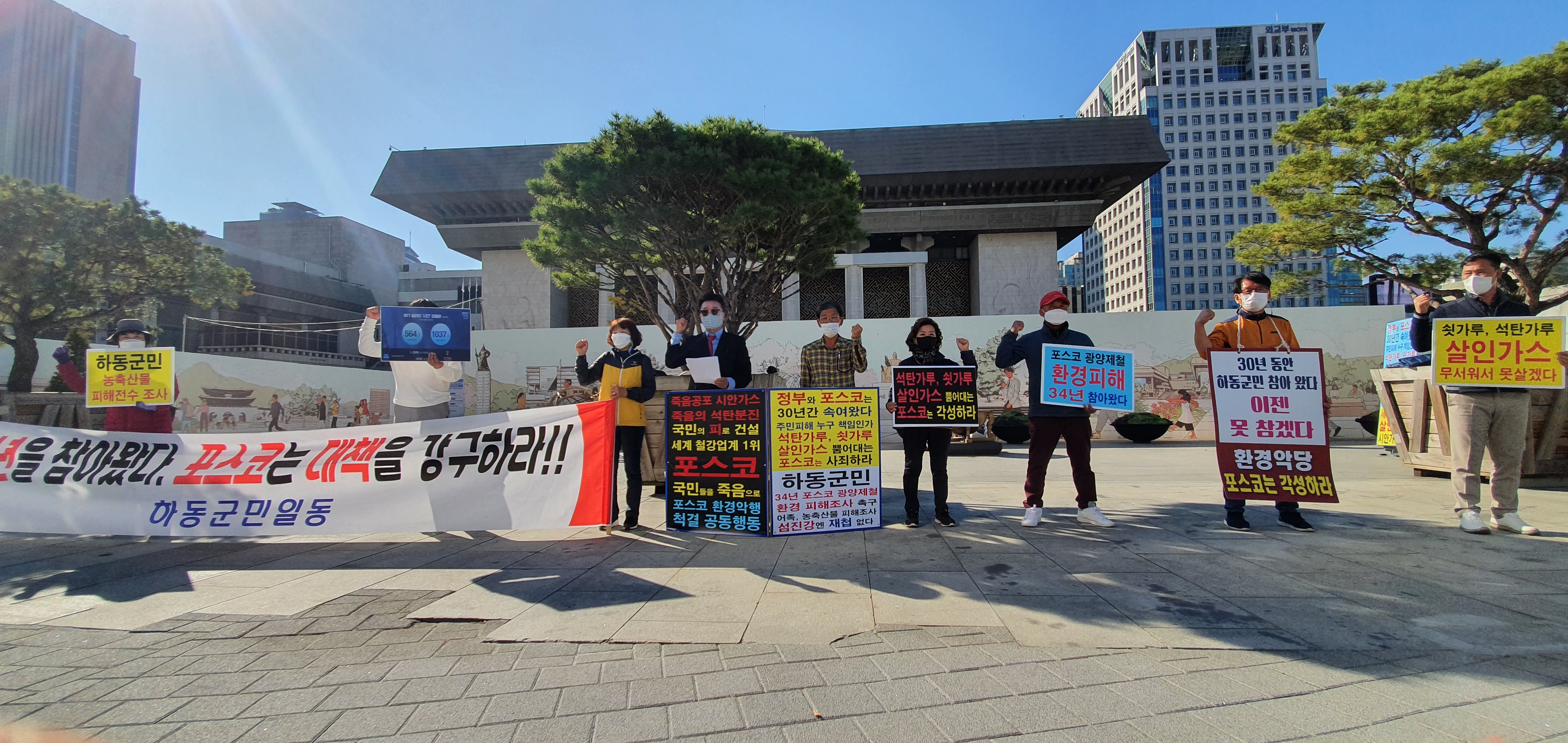 | - 일 시 : 2021. 10.28 (금) 오후2시 - 장 소 : 광화문 세종대왕 동상 앞 - 주 최 : 포스코 공동행동에는 전남 여수 묘도주민들, 포스코 광양제철소 하동군 피해 대책위원회, 글로벌에코넷, 행·의정 감시네트워크 중앙회 |