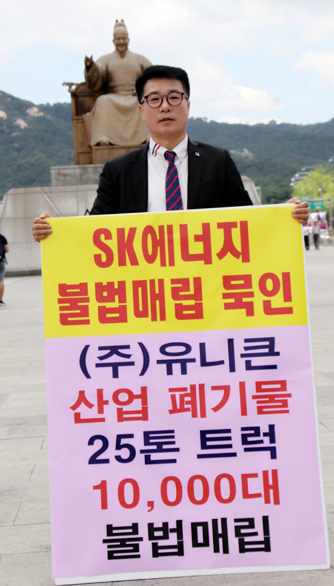 SK에너지 25톤트럭 10,000대 불법매립 묵인 유니큰 공범 의혹 광화문 1인시위