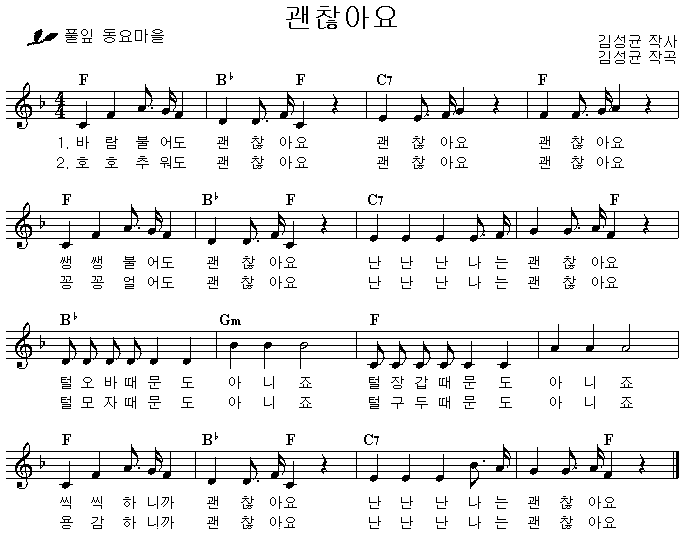 괜찮아요 / 바람불어도 [무료동요듣기 + 동요악보]