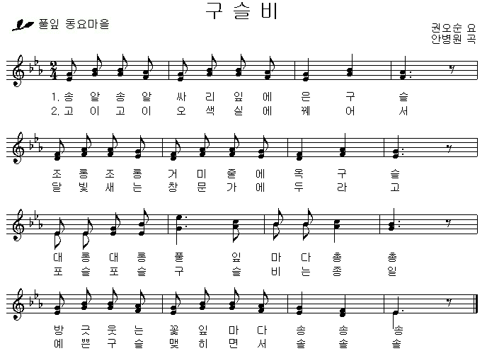 구슬비 / 송알송알싸리잎에 [동요무료듣기 + 악보]