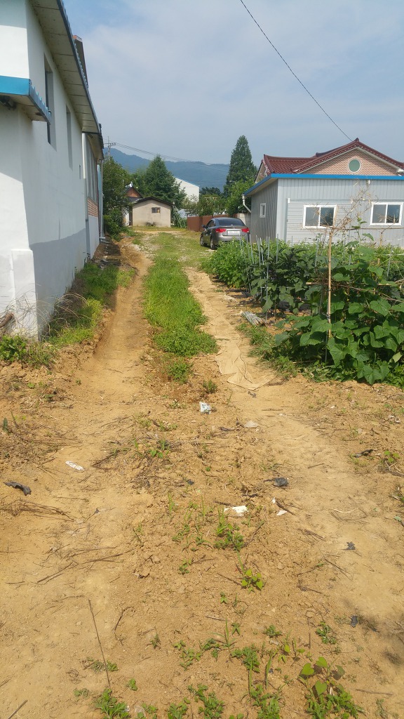 중앙교회 차들이 매일 우리농장 땅을 밟고 들어와 우리농장에 길이 생겼다.