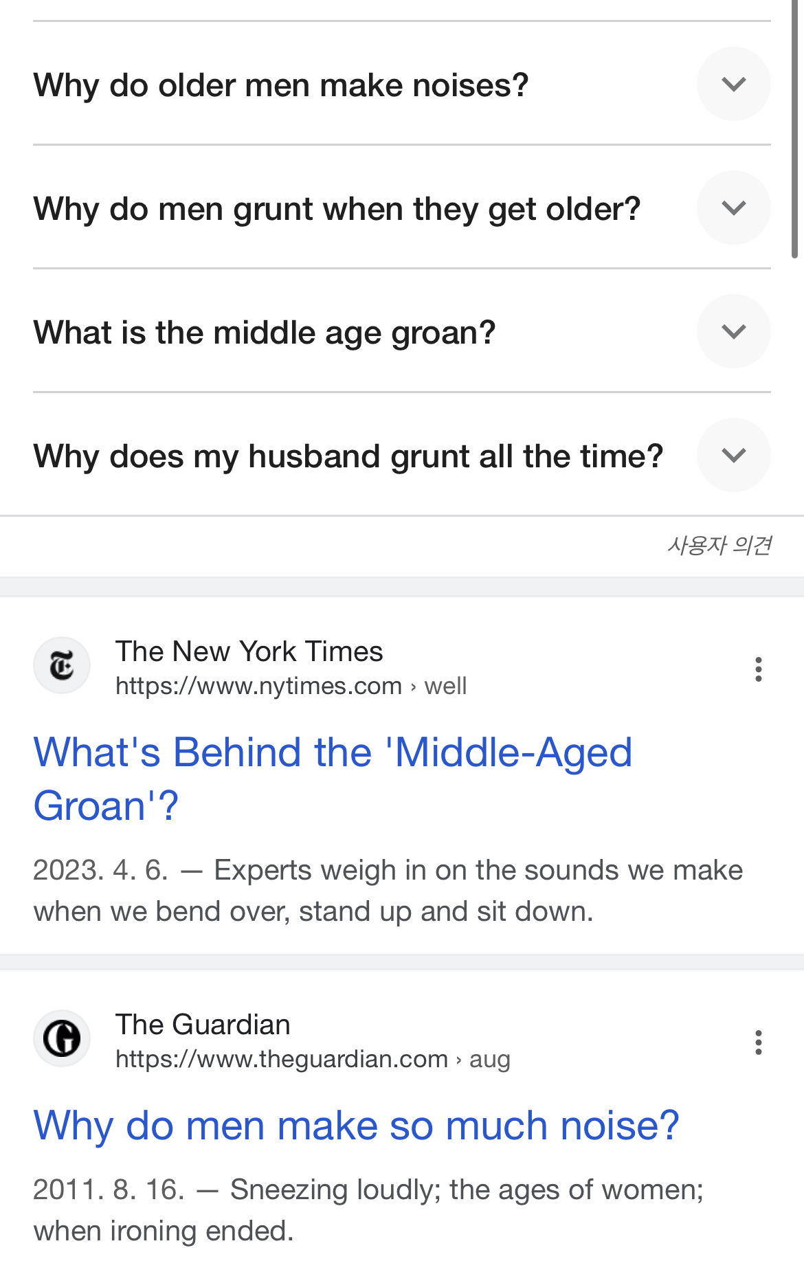 구글에 너무나도 많은 ‘왜 나이 든 남자들은 소리를 많이 내는가?’에 관한 질문들