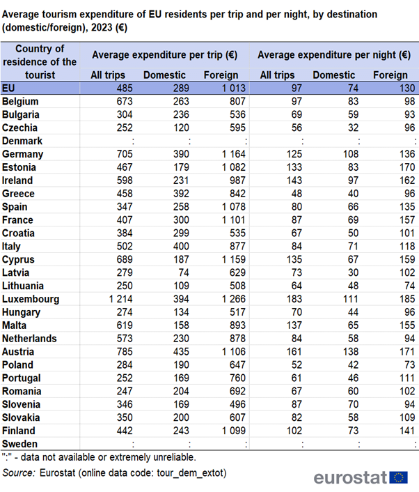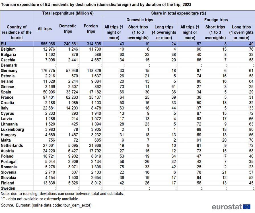 2023년 EU국가들의 관광 통계를 살펴보겠음