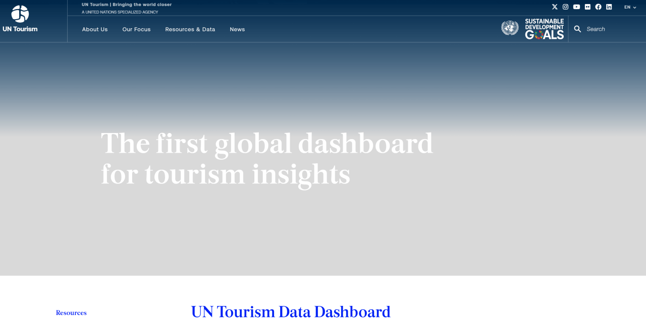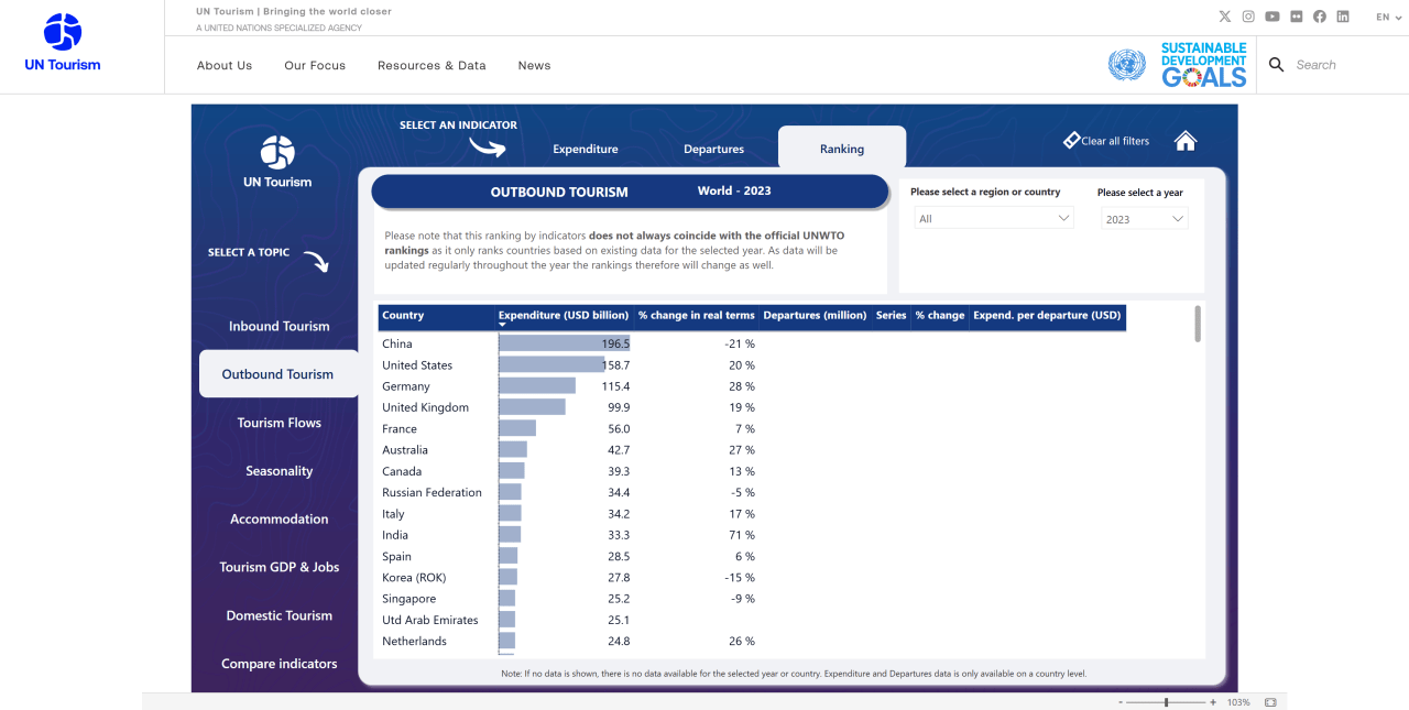 UN 관광기구는 매년 전세계의 국내, 해외여행 및 비행 관련 데이터를 수집, 비교하여 정리한 통계를 배포한다.