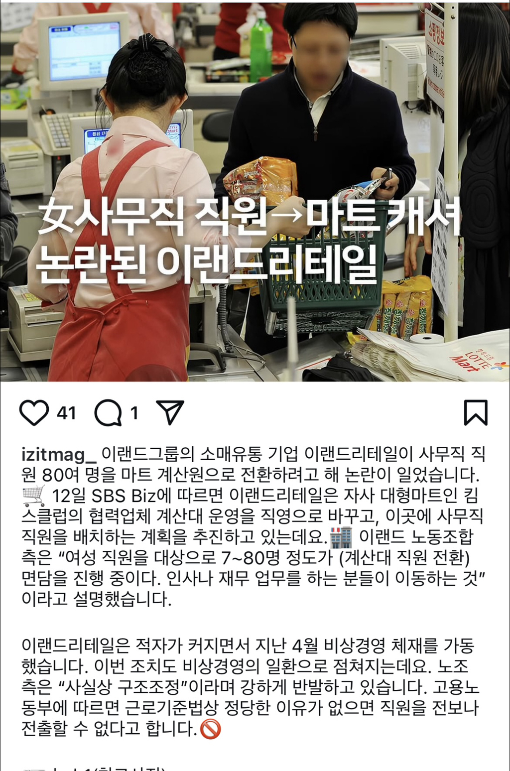 [스크랩] [궁금하면오백원]80여명 女사무직 직원, 마트캐셔 전환 논란중인 회사
