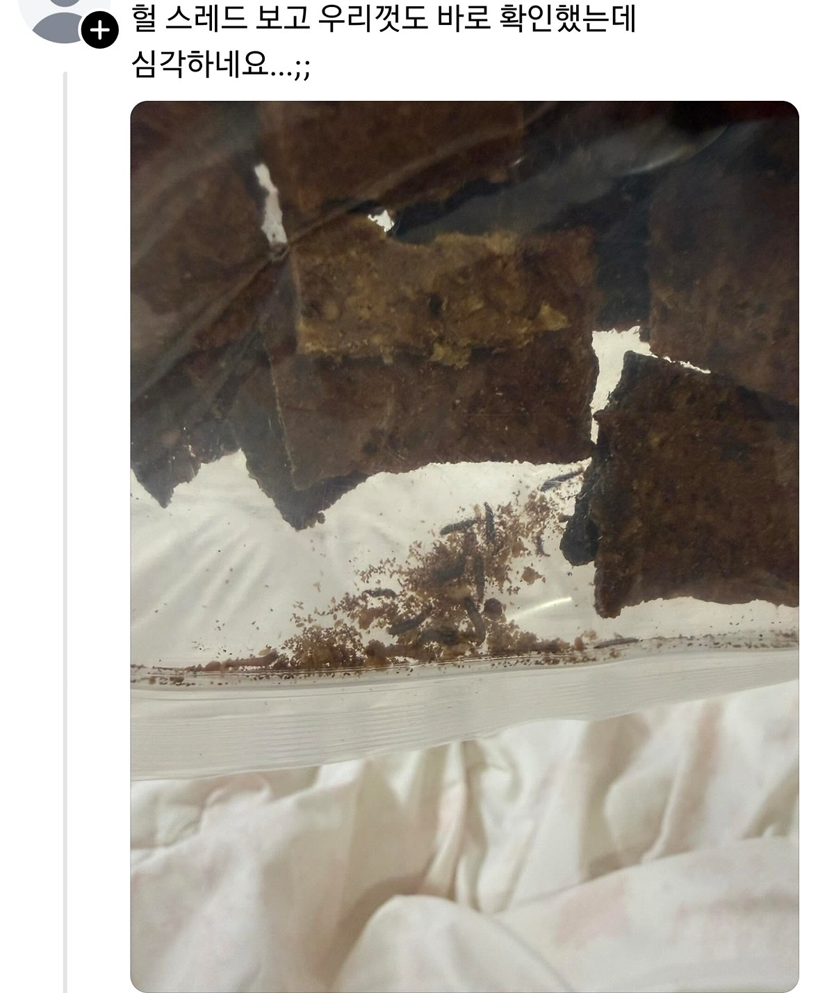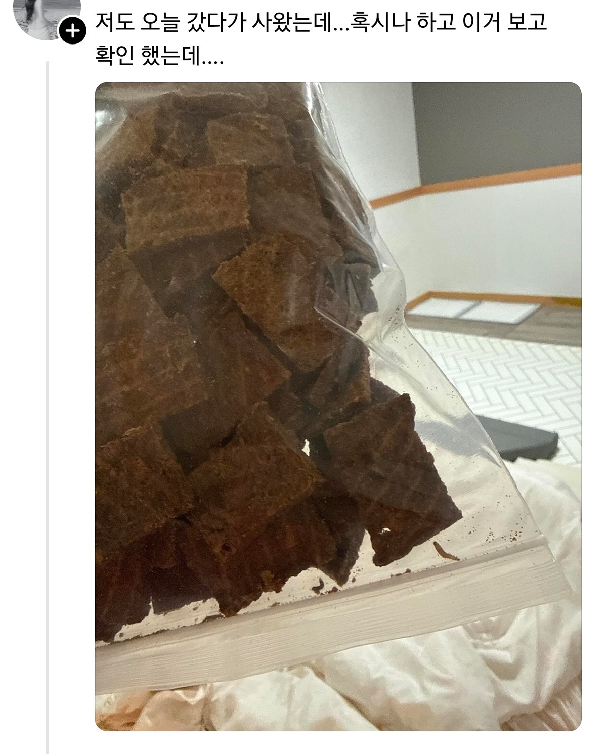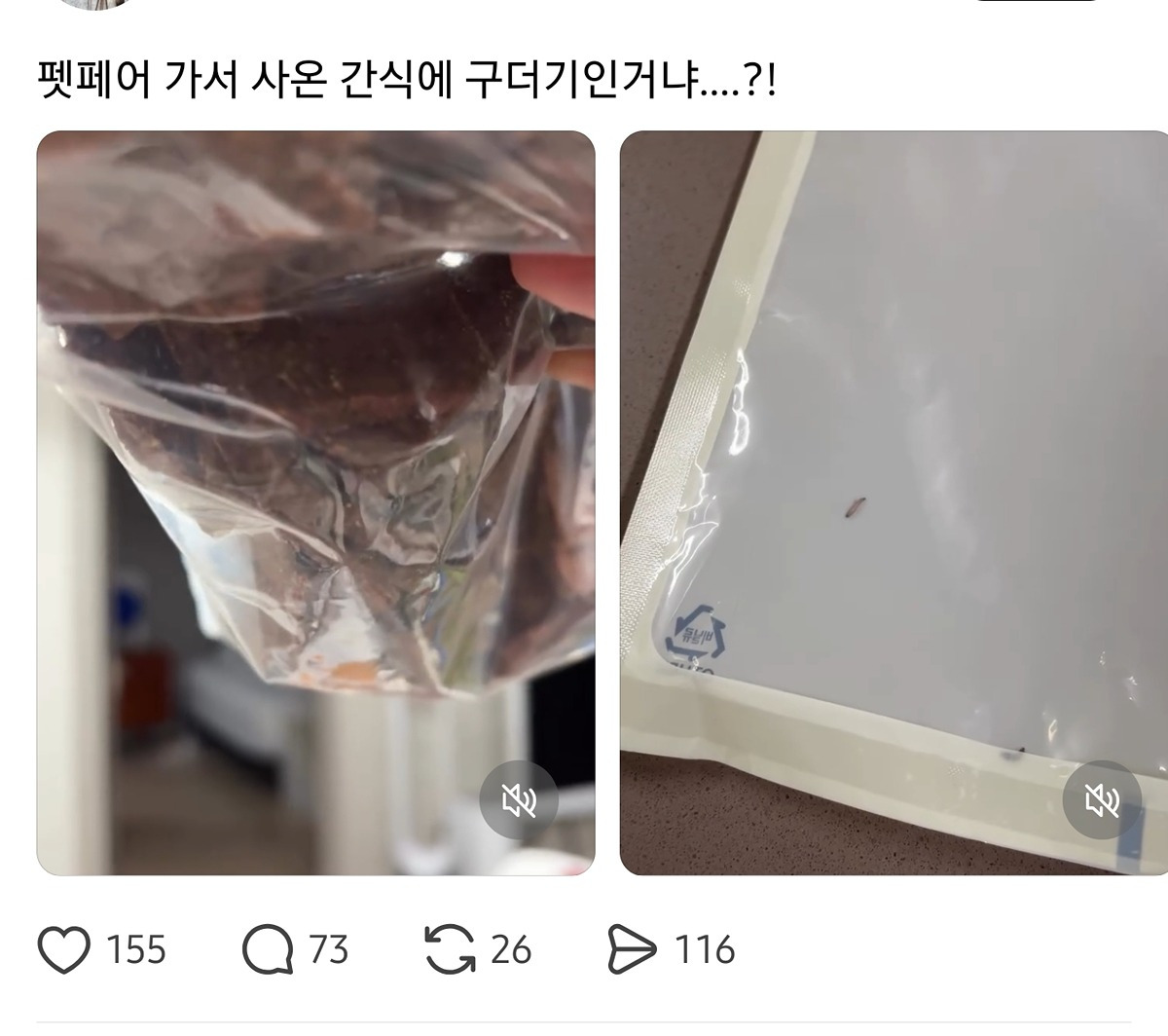 [스크랩] [궁금하면오백원]펫박람회에서 간식 사왔는데 구더기있음 ㄷㄷ(벌레사진O) 작성자망글곰|작성시간25.10.11|조회수465 목록 댓글 18 글자크기 작게가 글자크기 크게가 출처: https://theqoo.net/square/3947388672더쿠 - 펫박람회에서 간식 사왔는데 구더기있음 ㄷㄷ여기를 눌러 링크를 확인하세요theqoo.net벌레사진주의광주(광역시)펫쇼에 참가한 업체임.. 다음검색 스크랩 원문 : *여성시대* 차분한 20대들의 알흠다운 공간 현재 게시글 추가 기능 열기 북마크 신고 센터로 신고 댓글 댓글 18 댓글쓰기 답글쓰기 댓글 리스트 작성자JUNGTW_LEO | 작성시간 25.10.11 한두개가 아니네 미친 작성자루이까또즈 | 작성시간 25.10.11 화랑곡나방 애벌레네 작성자감바스 | 작성시간 25.10.12 미쳐.. 작성자호피 | 작성시간 25.10.12 헐.. 어디회사야 작성자하트. | 작성시간 25.10.12 하 펫페어에서 저렇게 하면 안되지....... 댓글 전체보기