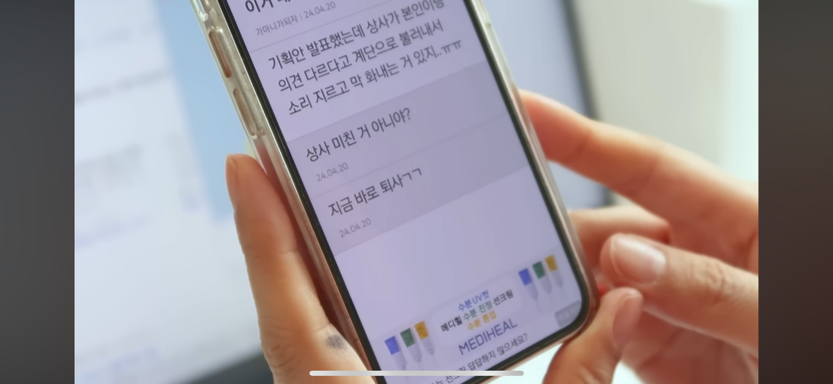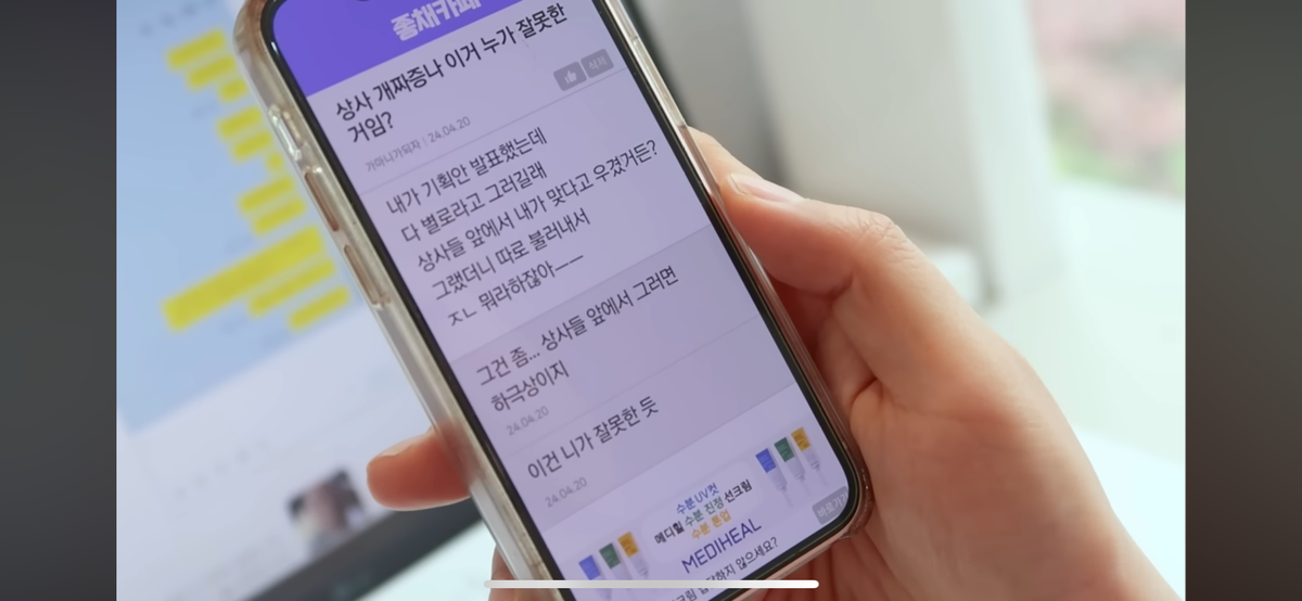 상사들이 유미가 발표한거 지적하니 하는 말임