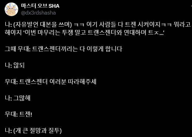 투쟁인 줄 알고 투쟁! 같이 외쳤는데 트젠이었다는 거 나중에 안 사람들도 많음