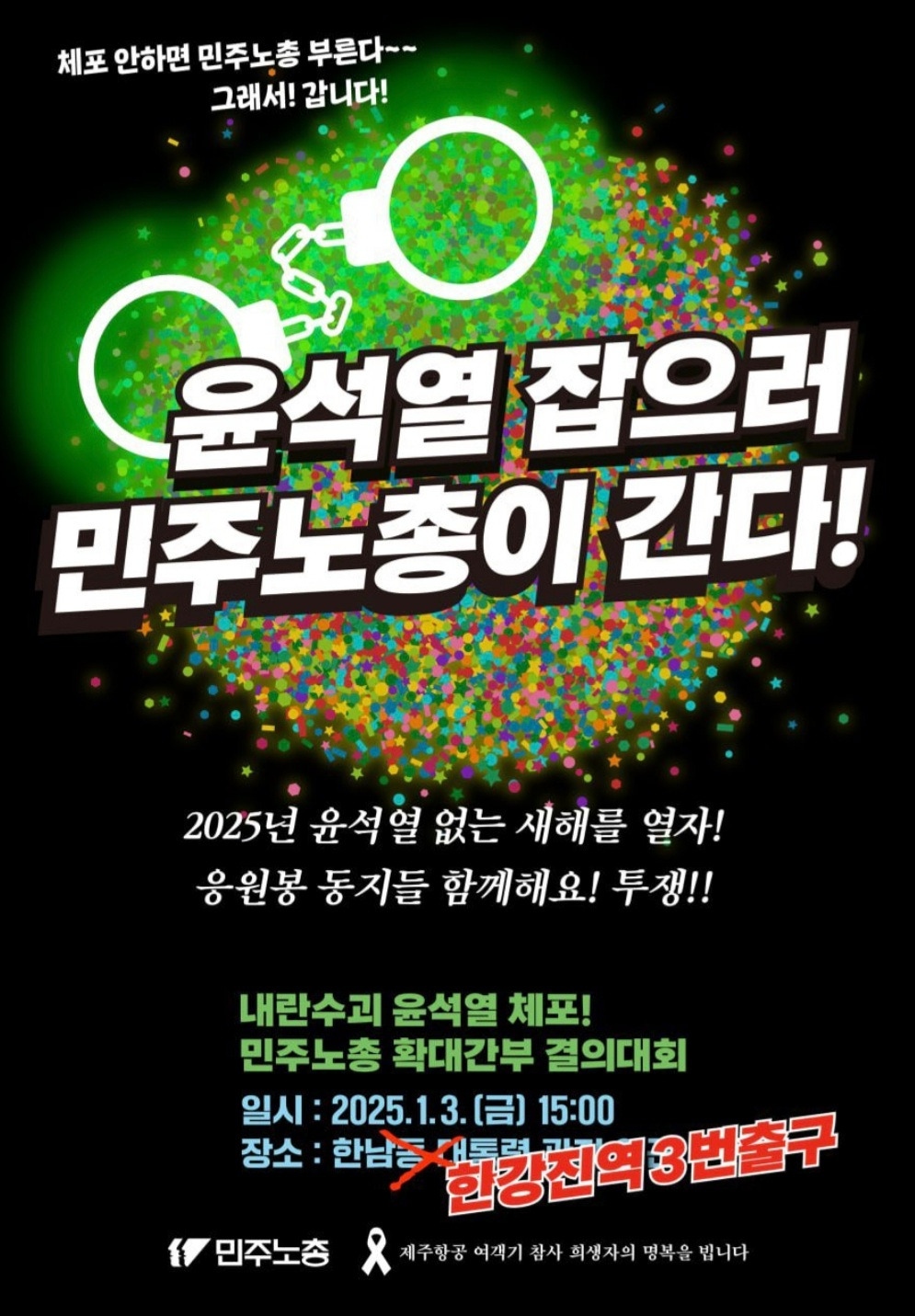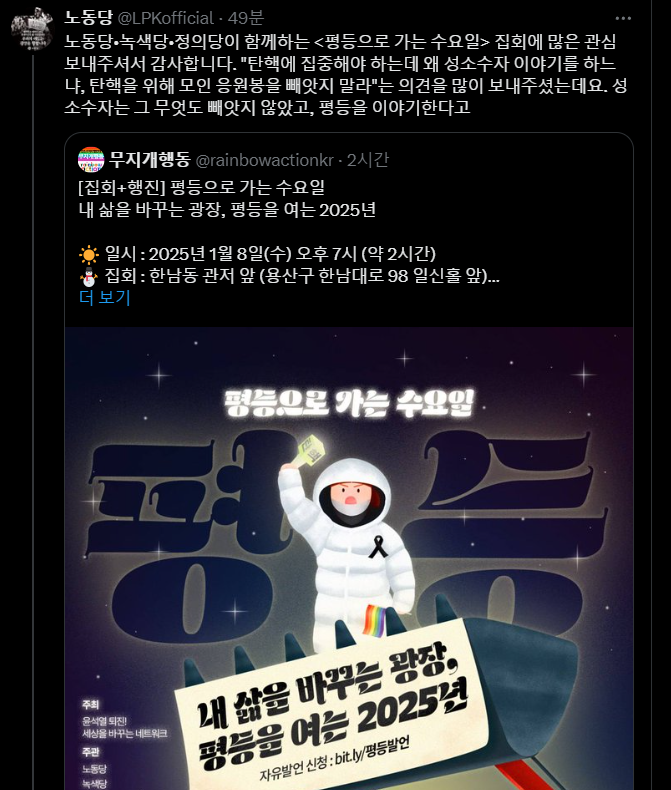 한강진 집회 홍보할때 민주노총은 대놓고 응원봉 동지를 불렀음